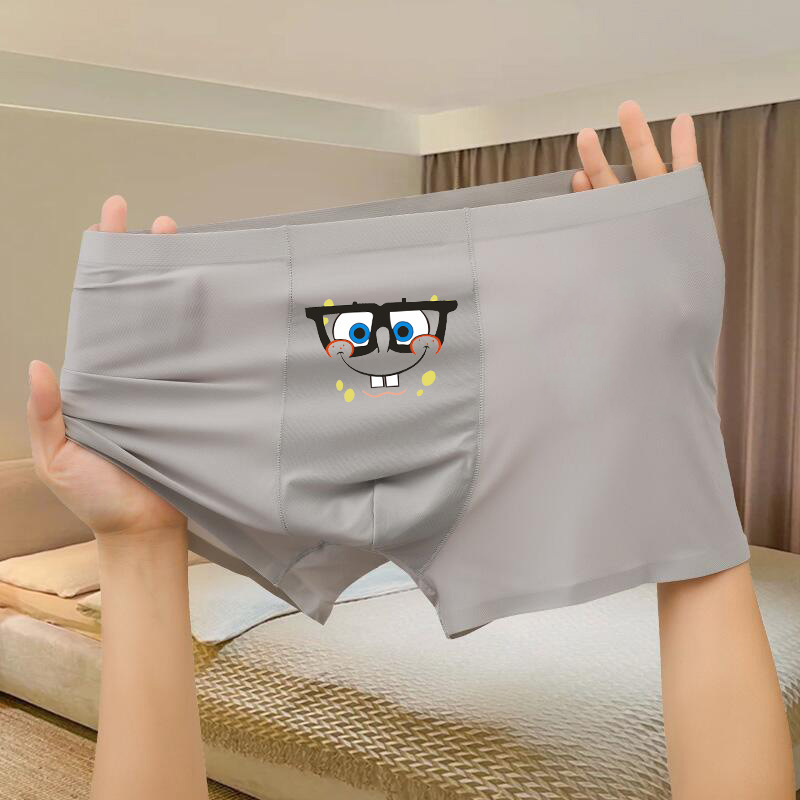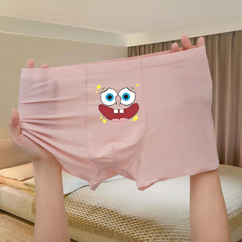 남자 속옷 귀여운 만화 얼음 실크 원활한 여름 얇은 남자 속옷 사각형 소년 바지 핑크 남자 여름스토어 가기