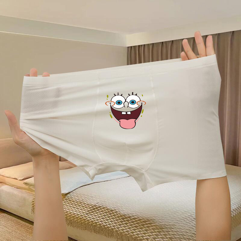 남자 속옷 귀여운 만화 얼음 실크 원활한 여름 얇은 남자 속옷 사각형 소년 바지 핑크 남자 여름