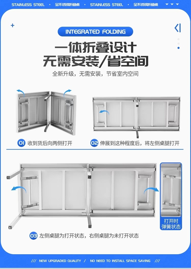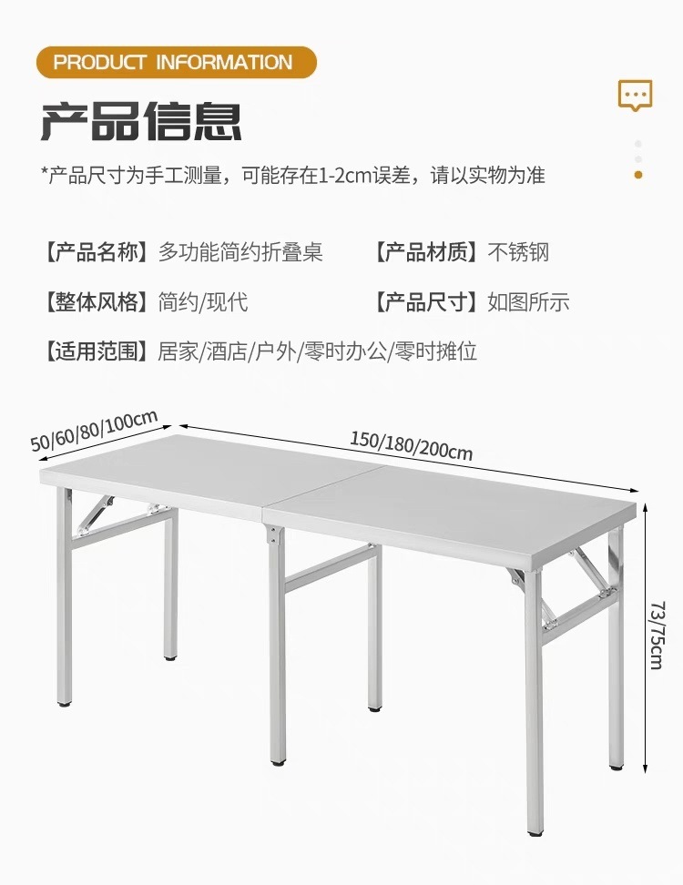 두꺼운 스테인레스 스틸 캠핑 접이식 테이블 긴 테이블 상업용 직사각형 야외 바베큐 스톨 편리한 식탁스토어 가기