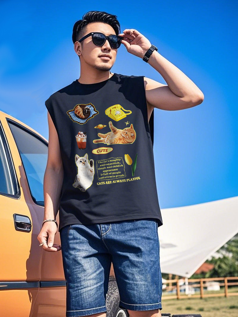 2025 새로운 여름 유행 브랜드 팻 브라더 민소매 조끼 플러스 사이즈 남성 느슨한 뚱뚱한 남자 스포츠 농구 셔츠스토어 가기