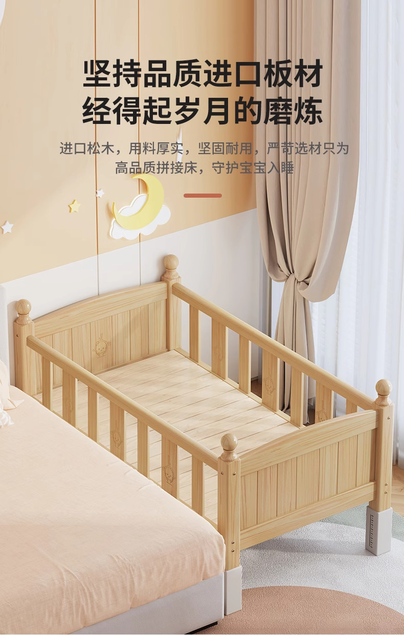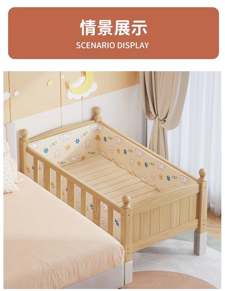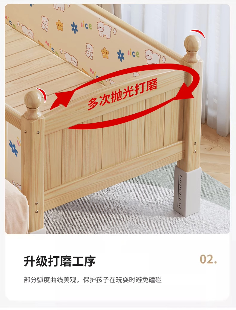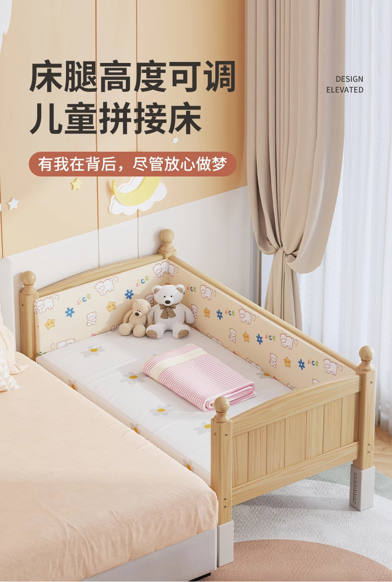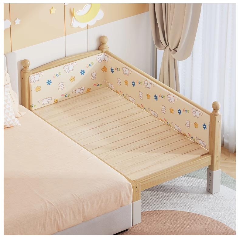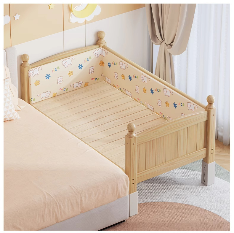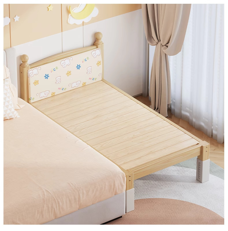 단단한 나무 어린이 침대, 가드레일이 있는 조절식 리프팅 다리, 침대 울타리, 유아용 침대, 대형 침대 접합, 싱글 사이드 침대 확장