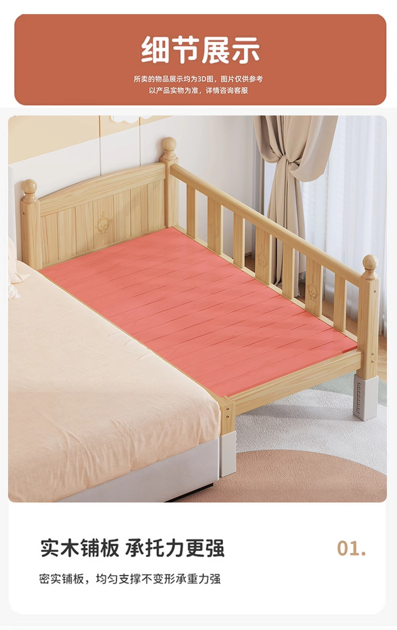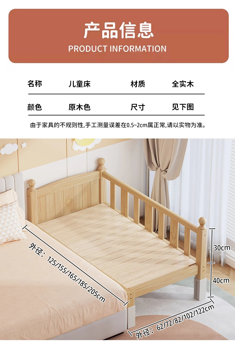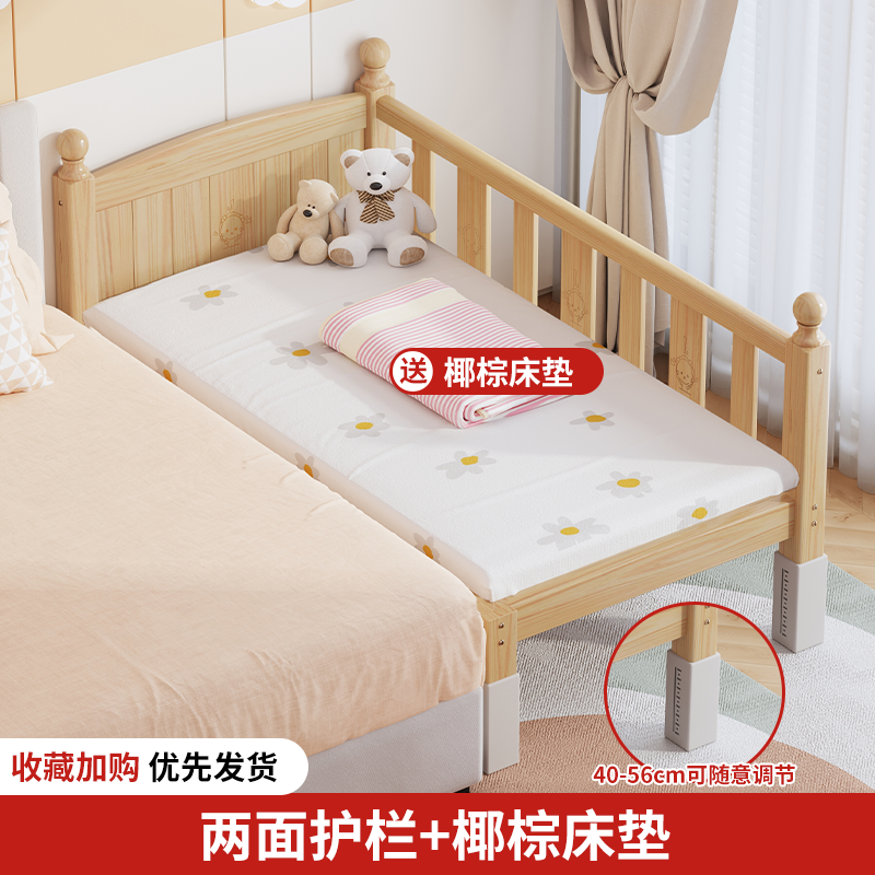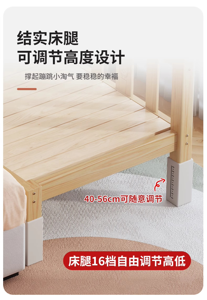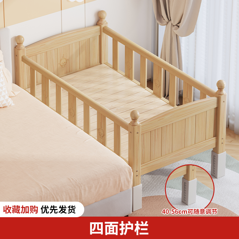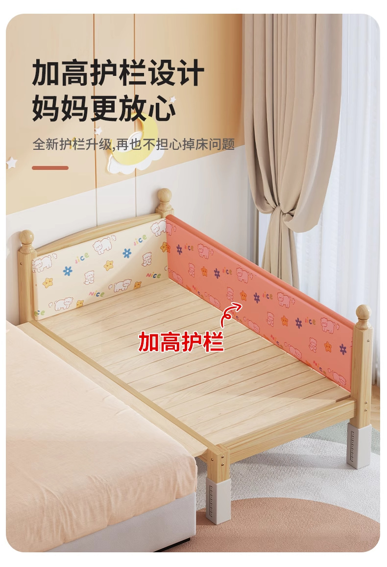 단단한 나무 어린이 침대, 가드레일이 있는 조절식 리프팅 다리, 침대 울타리, 유아용 침대, 대형 침대 접합, 싱글 사이드 침대 확장스토어 가기