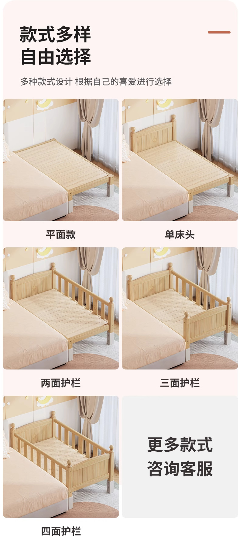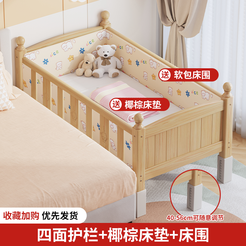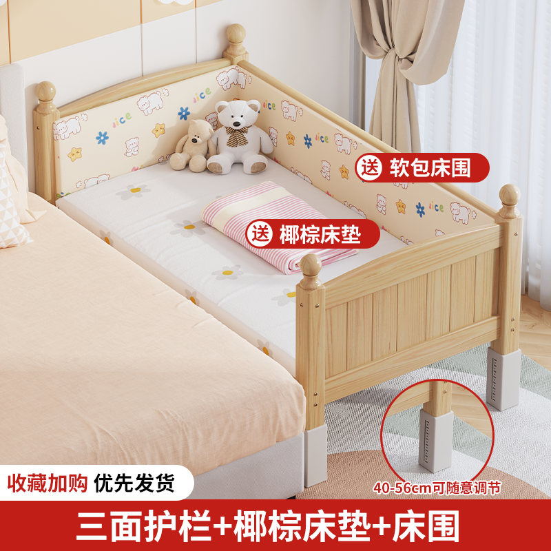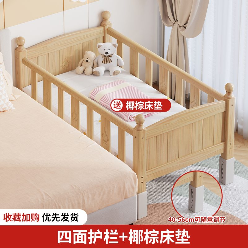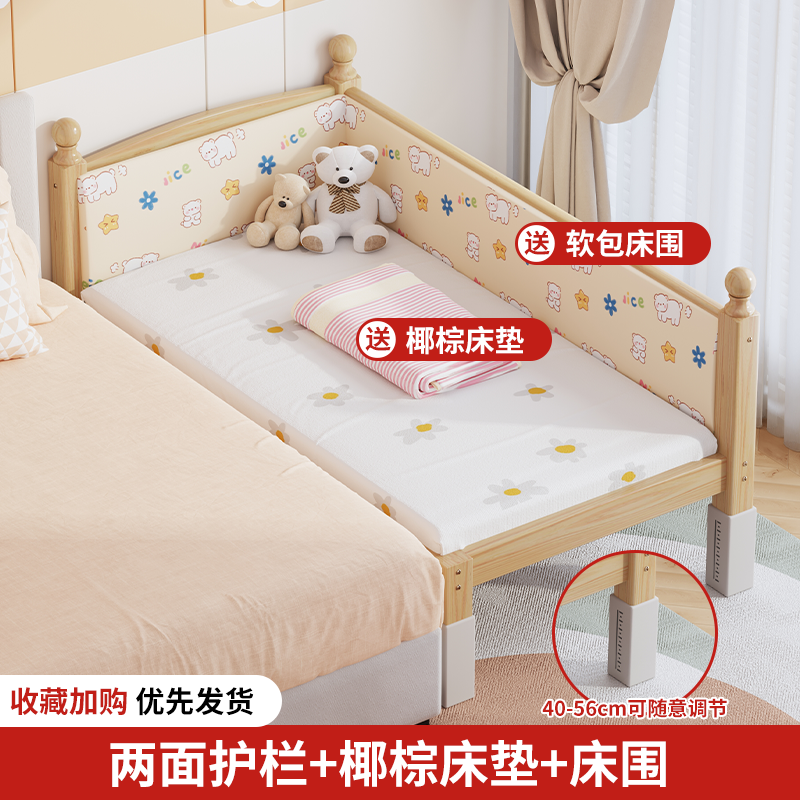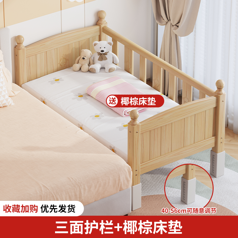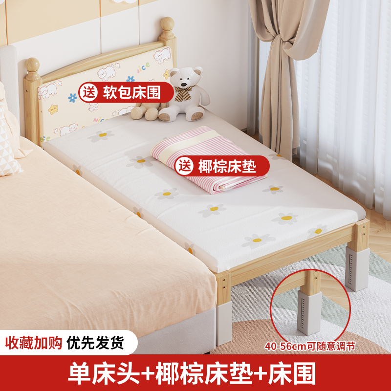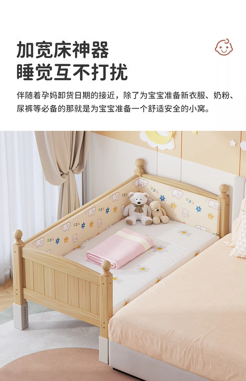 단단한 나무 어린이 침대, 가드레일이 있는 조절식 리프팅 다리, 침대 울타리, 유아용 침대, 대형 침대 접합, 싱글 사이드 침대 확장스토어 가기