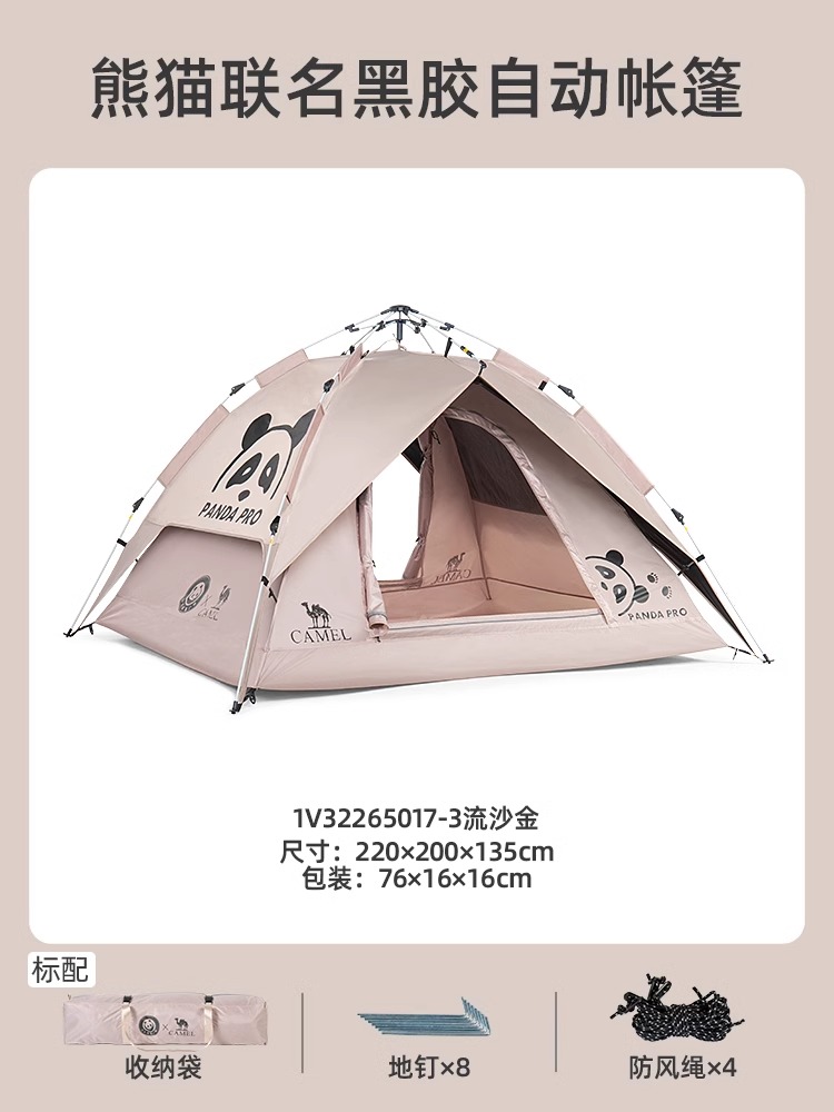 카멜(CAMEL) 팬더(CAMEL) 콜라보레이션 텐트 신형 아웃도어 캠핑 자동 텐트 휴대용 넓은 공간 캠핑 장비 도매