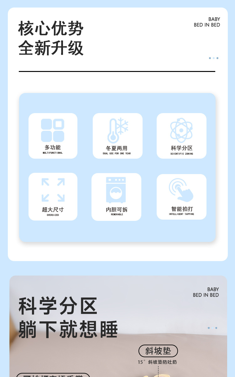 침대 안의 침대, 신생아 압박 방지, 0~3세 아기, 깜짝 놀란 방지, 침대 안에서 자는 아기, 깜짝 놀란 방지, 누워서 자는 도구