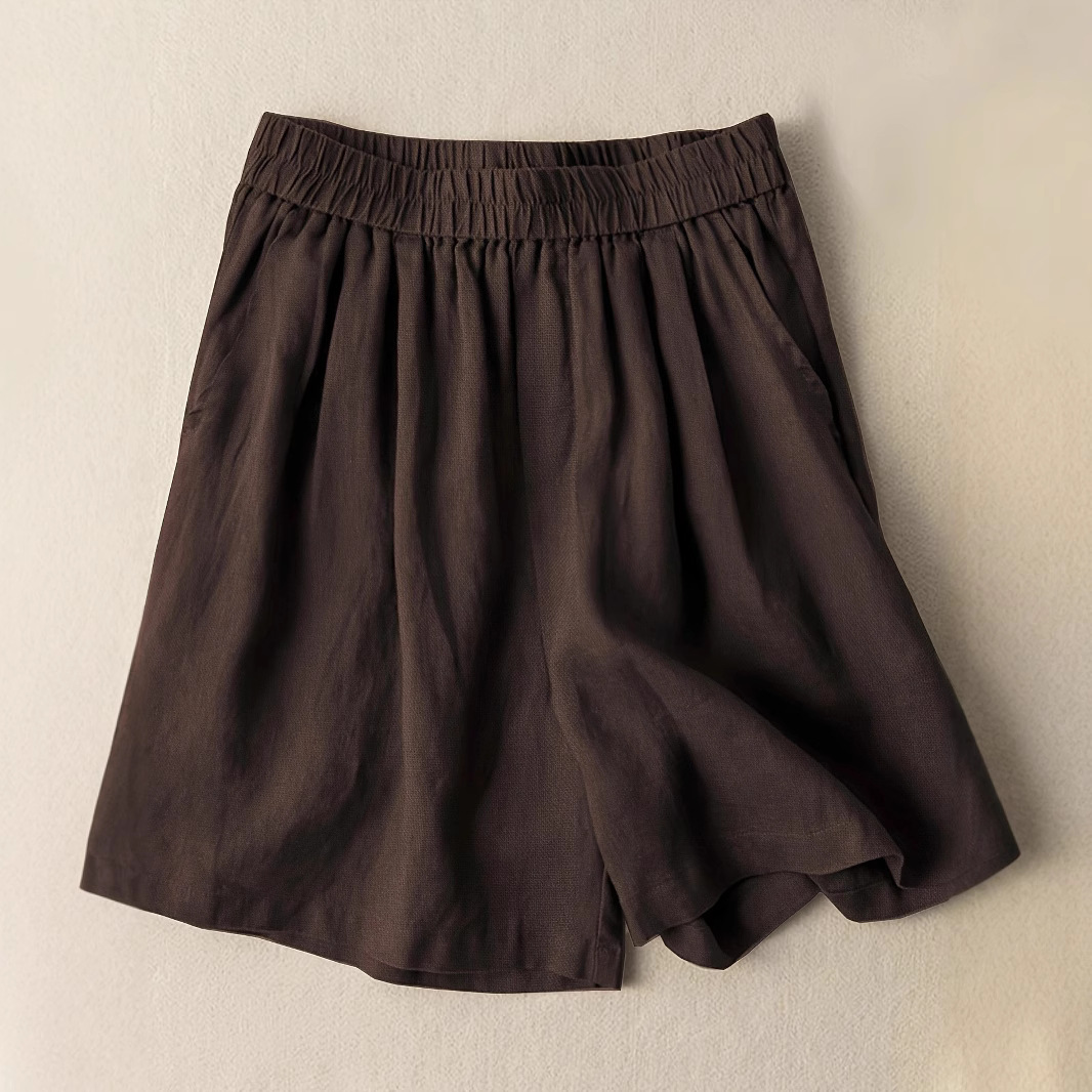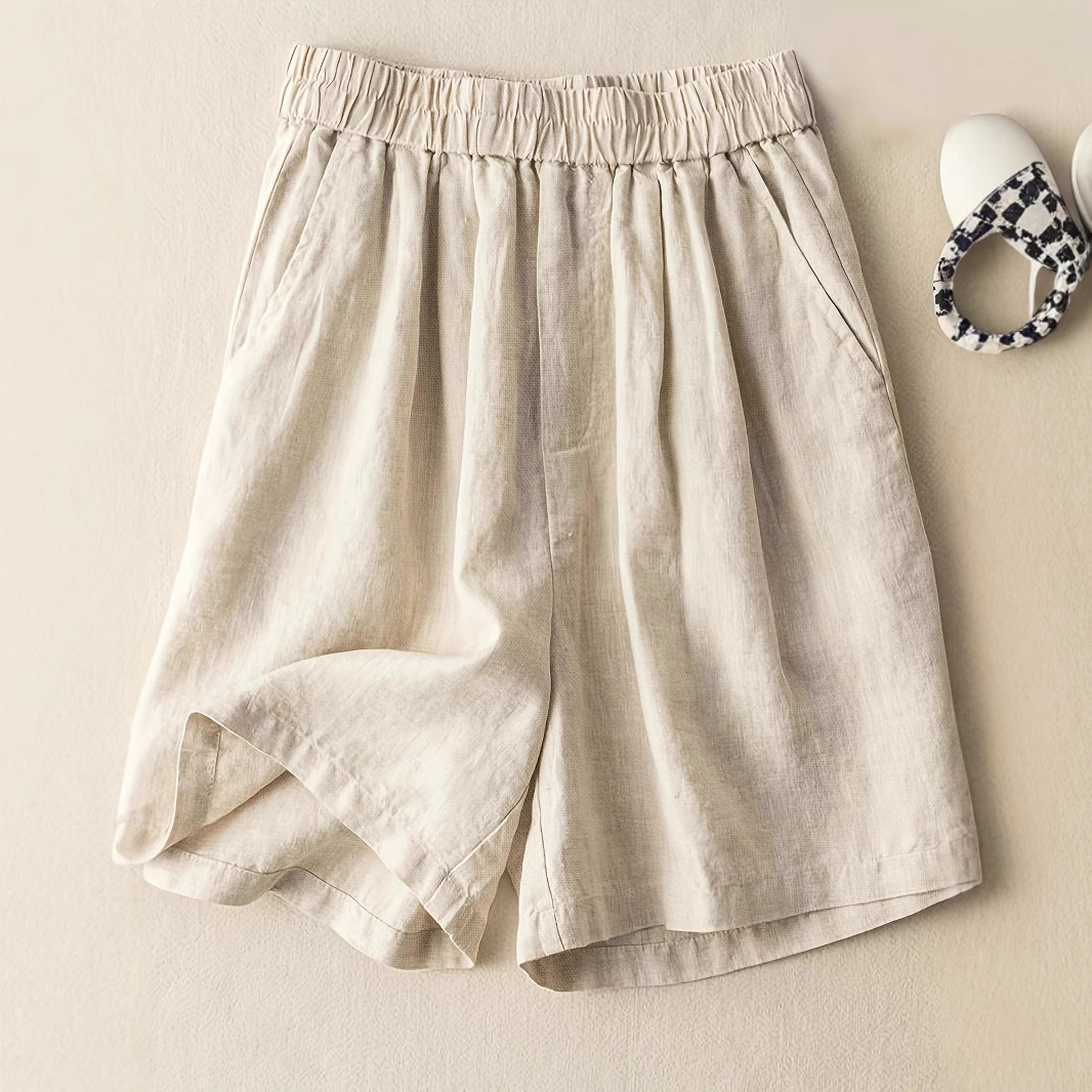 여름 여성용 레트로 코튼 린넨 와이드 팬츠, 여성용 얇은 하이웨이스트 반바지, 통기성이 좋고 루즈하며 다재다능하고 슬림하며 예술적인 캐주얼 팬츠스토어 가기