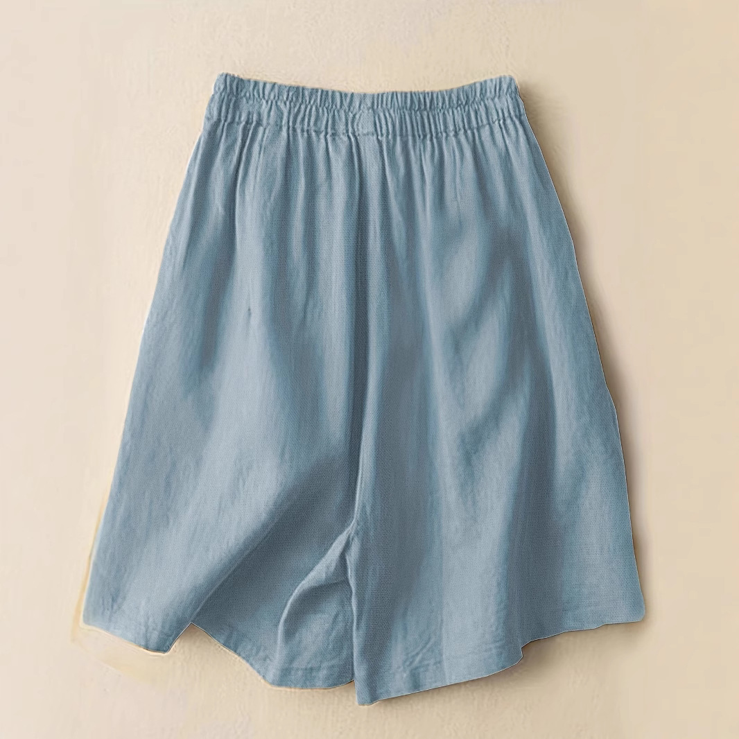 여름 여성용 레트로 코튼 린넨 와이드 팬츠, 여성용 얇은 하이웨이스트 반바지, 통기성이 좋고 루즈하며 다재다능하고 슬림하며 예술적인 캐주얼 팬츠