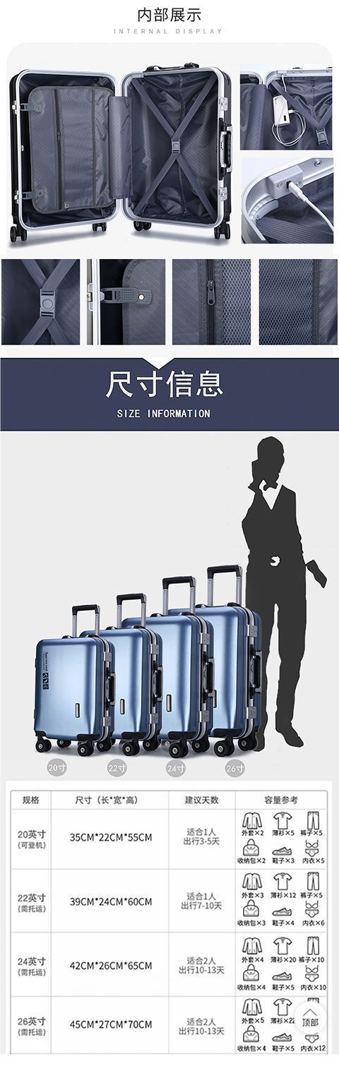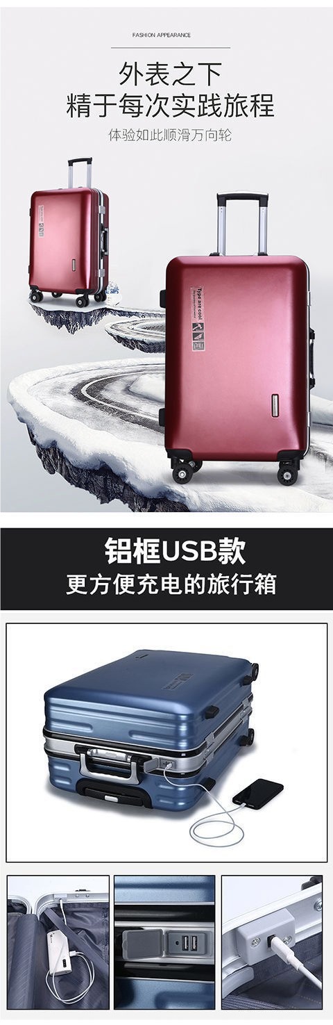 비즈니스 범용 휠 알루미늄 프레임 남성과 여성 학생 새로운 여행 가방 트롤리 케이스 암호 상자 인치 지퍼 탄소 섬유 대외 무역스토어 가기