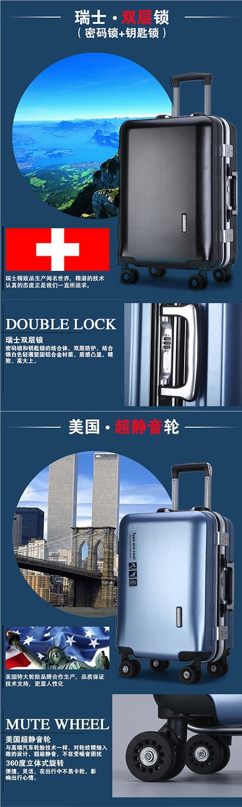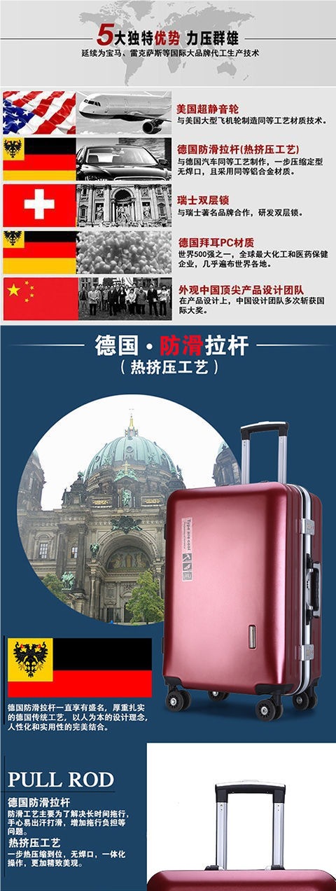 비즈니스 범용 휠 알루미늄 프레임 남성과 여성 학생 새로운 여행 가방 트롤리 케이스 암호 상자 인치 지퍼 탄소 섬유 대외 무역