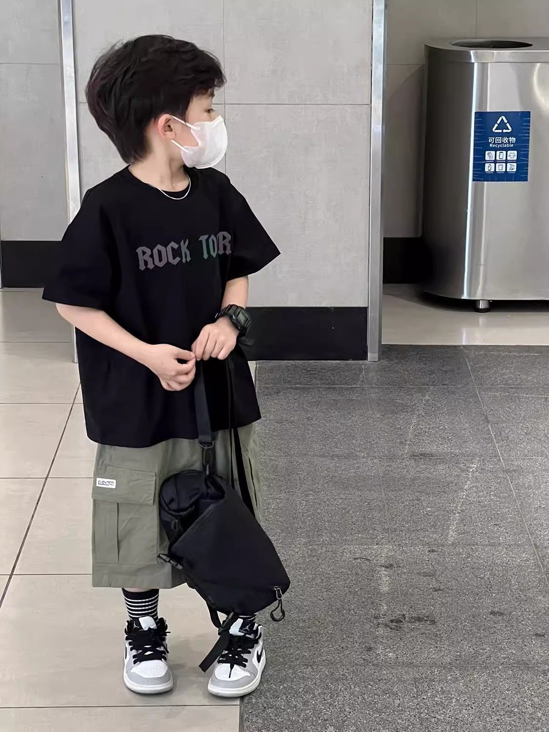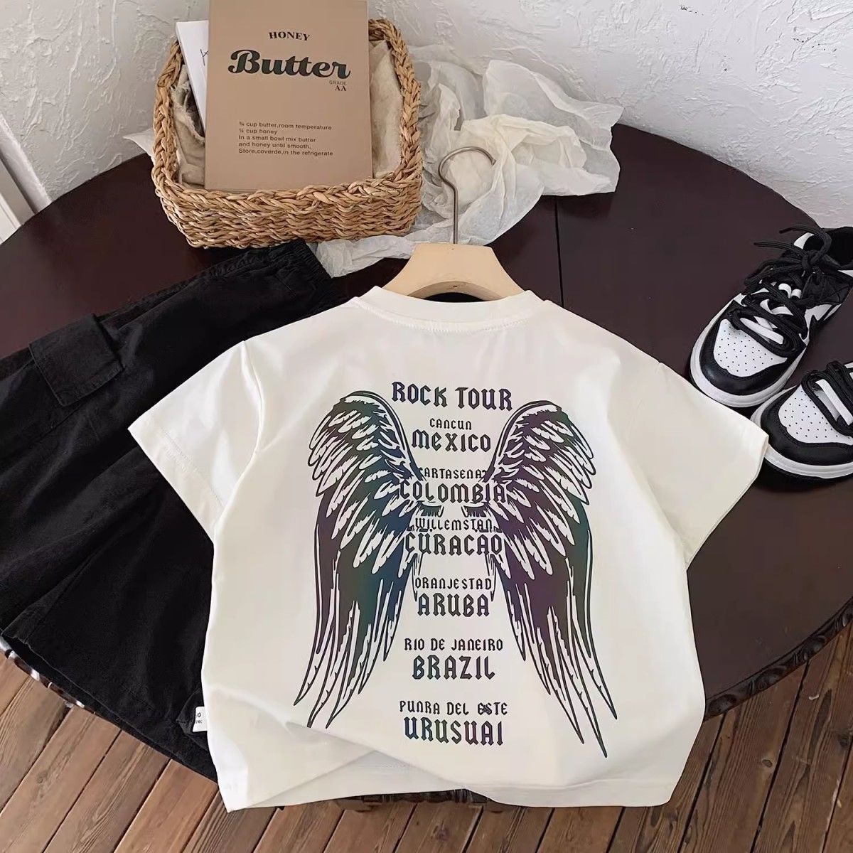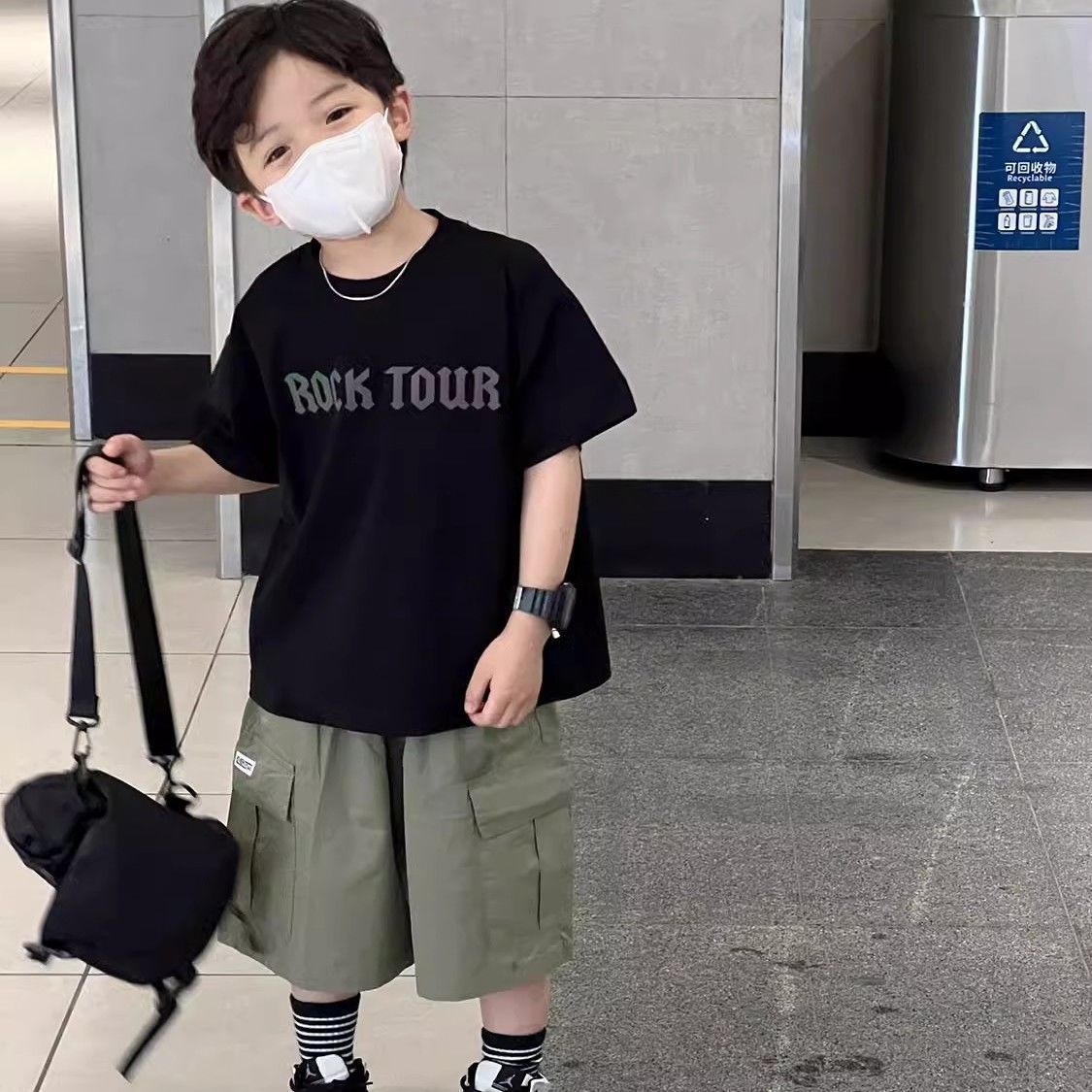 헤비급 순면 잘 생긴 아동복 소년 반팔 중간 아동 티셔츠 여름 느슨한 새 여름 탑 반팔스토어 가기