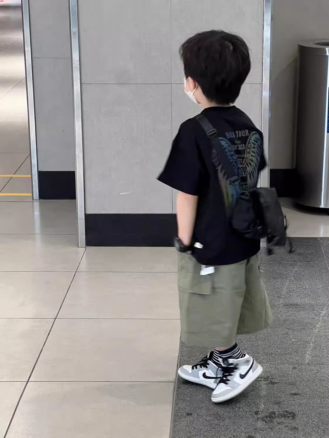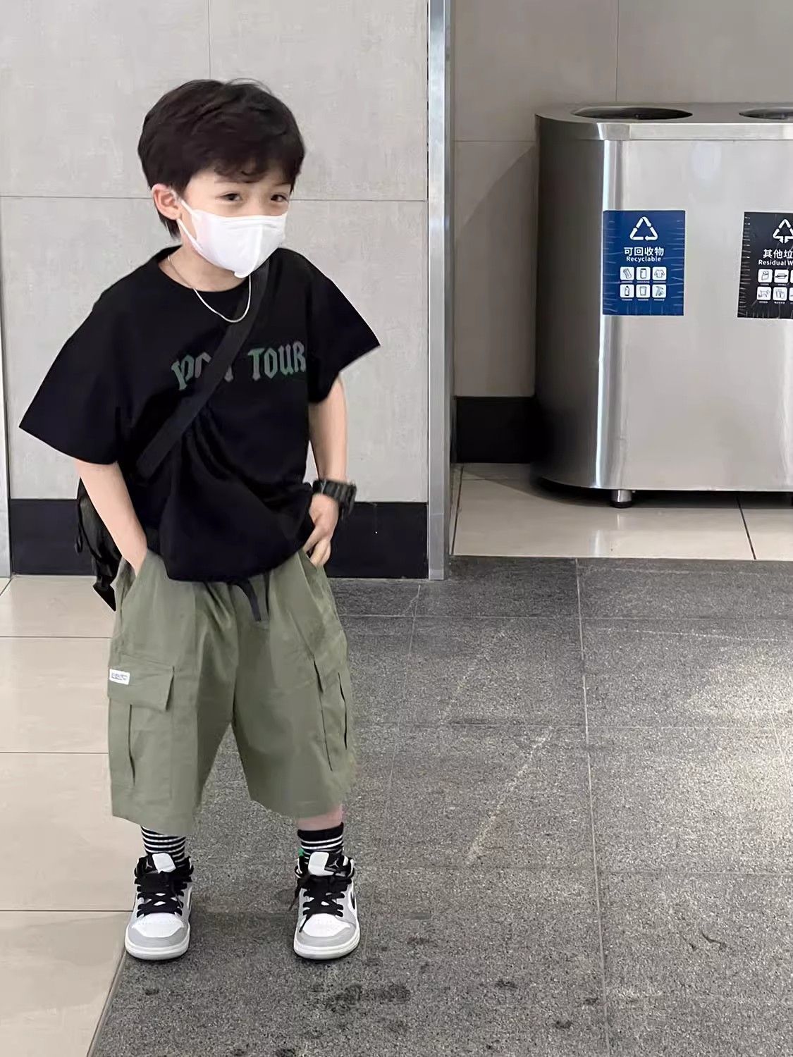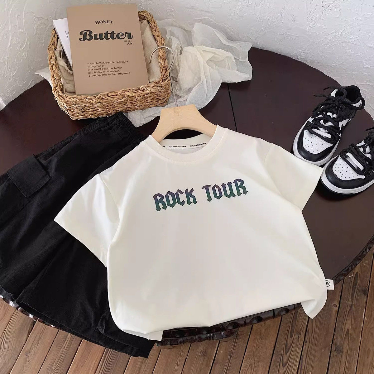 헤비급 순면 잘 생긴 아동복 소년 반팔 중간 아동 티셔츠 여름 느슨한 새 여름 탑 반팔스토어 가기