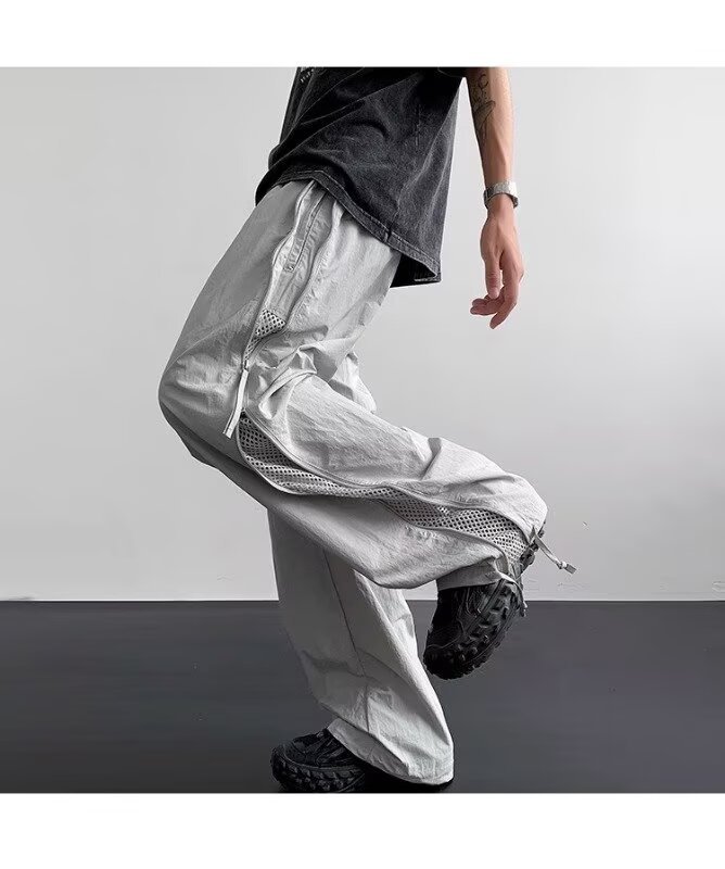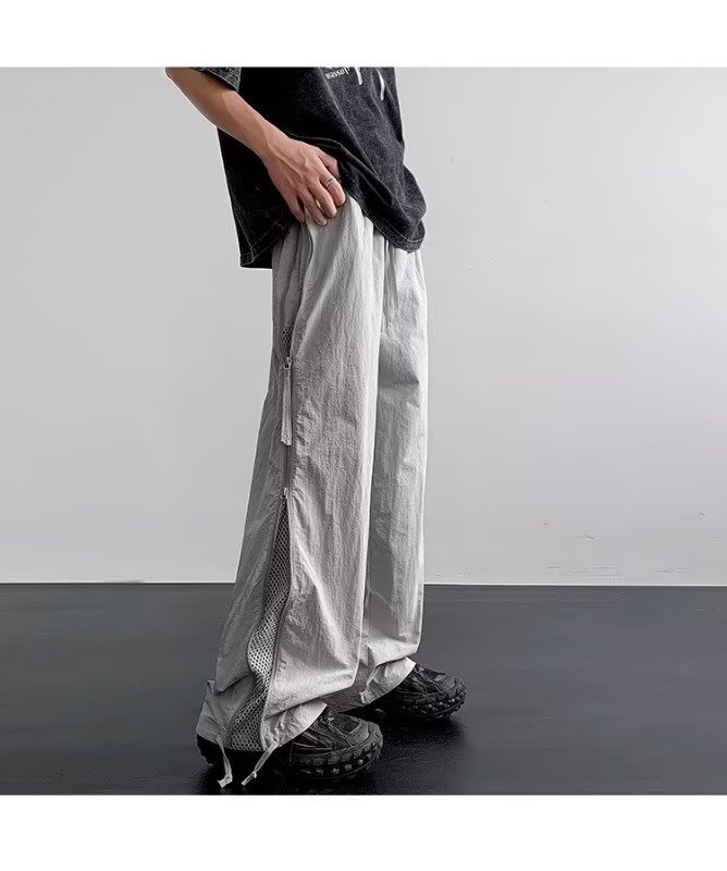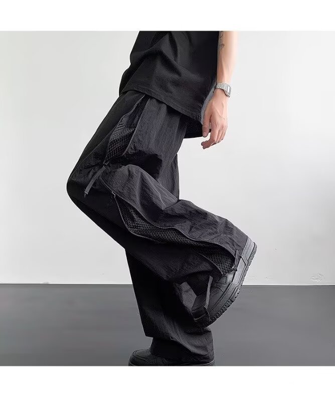 여름 남성용 트렌디한 기능성 스타일 아웃도어 팬츠, 드로스트링 레깅스, 하이 스트리트 트렌디한 통기성 작업복 캐주얼 바지