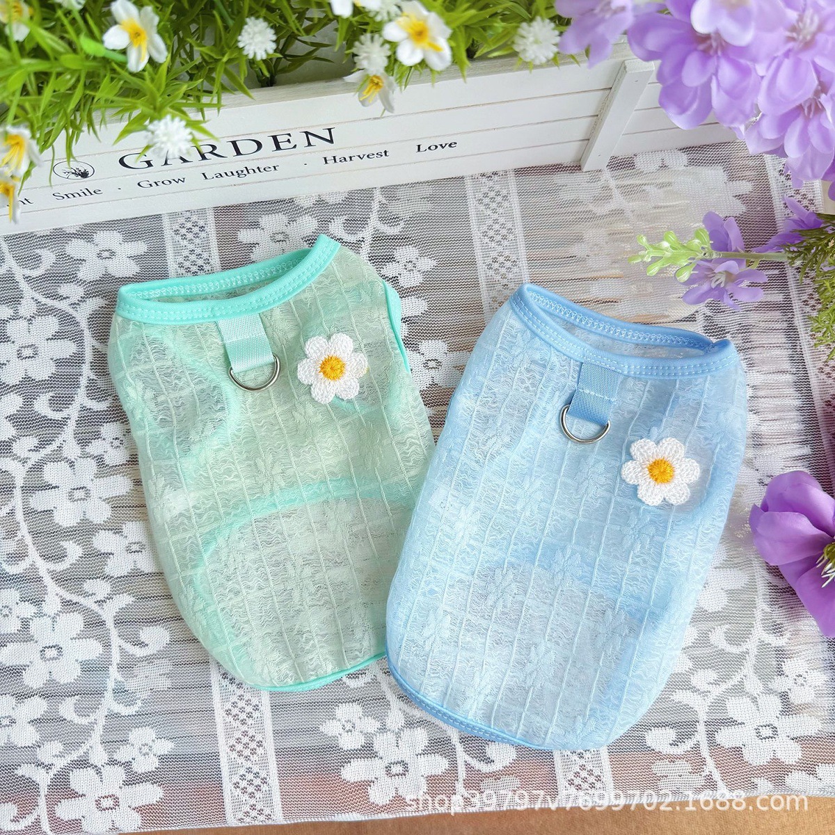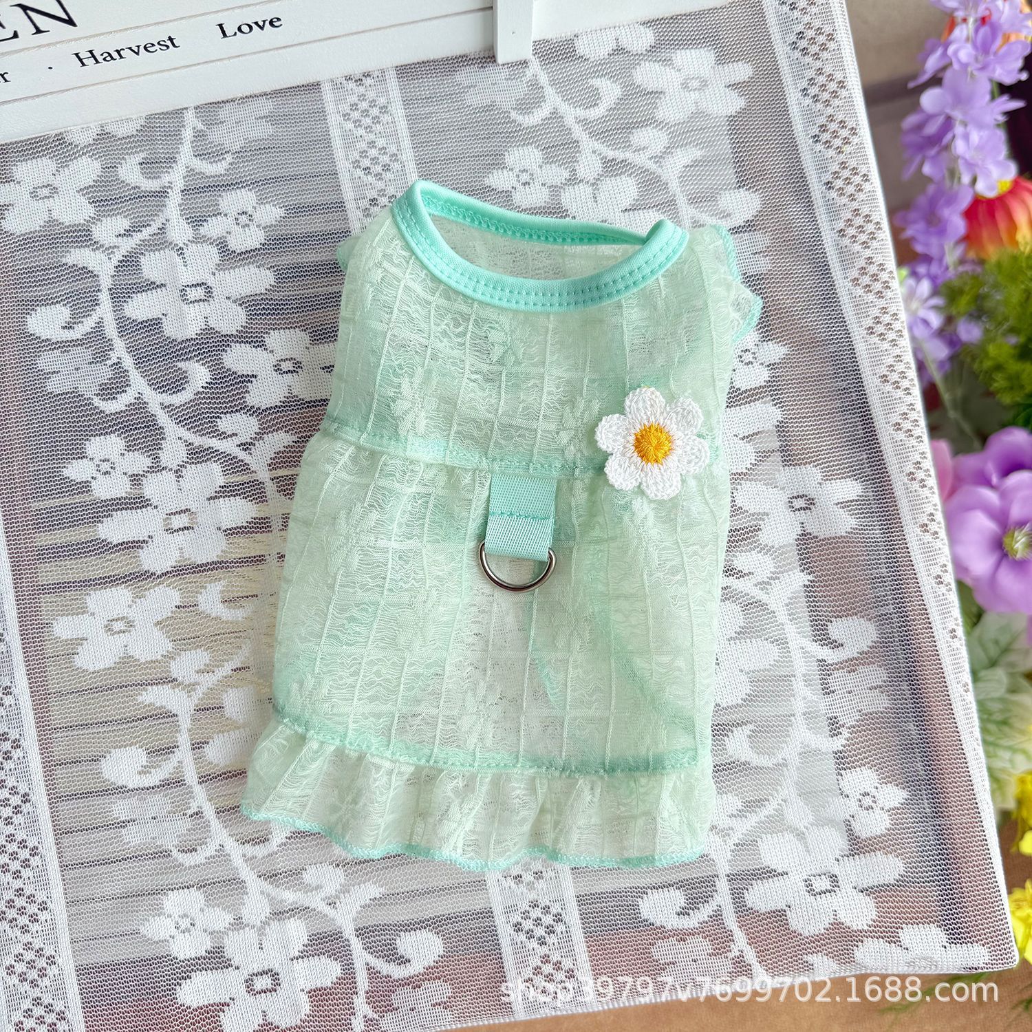 여름 메쉬 통기성 스커트 개와 고양이 옷 조끼 태양 보호 및 탈모 방지 공주 스타일 비숑 도매 국경 간스토어 가기
