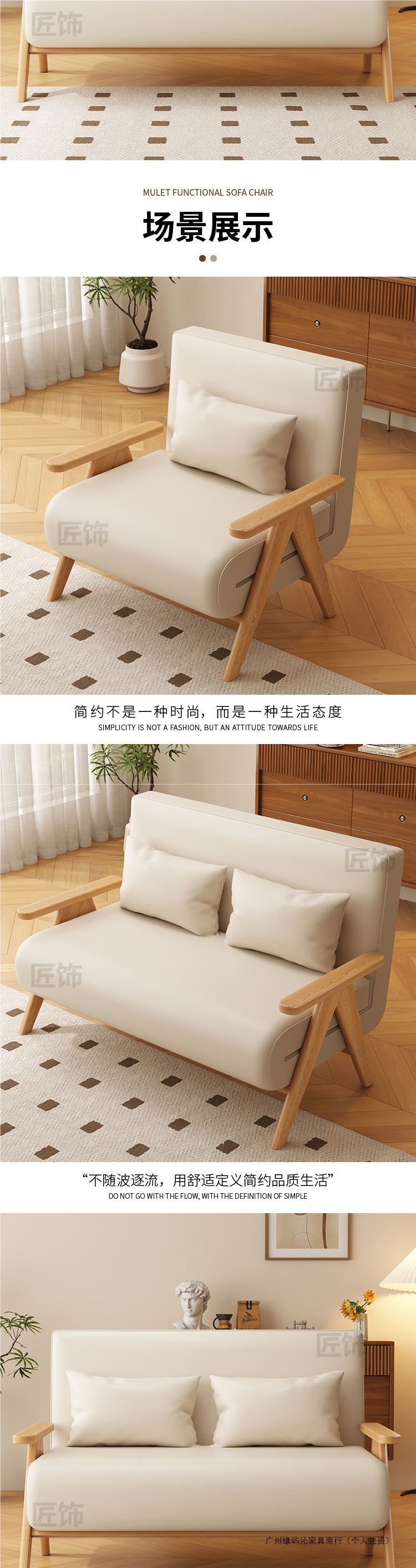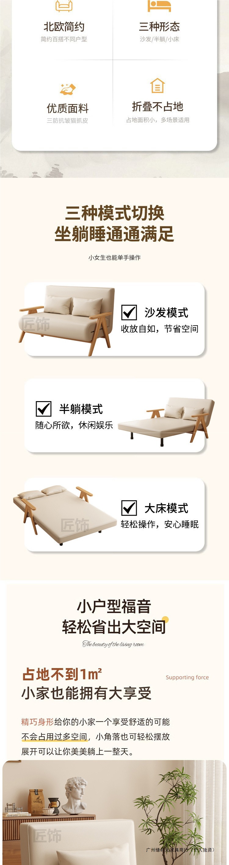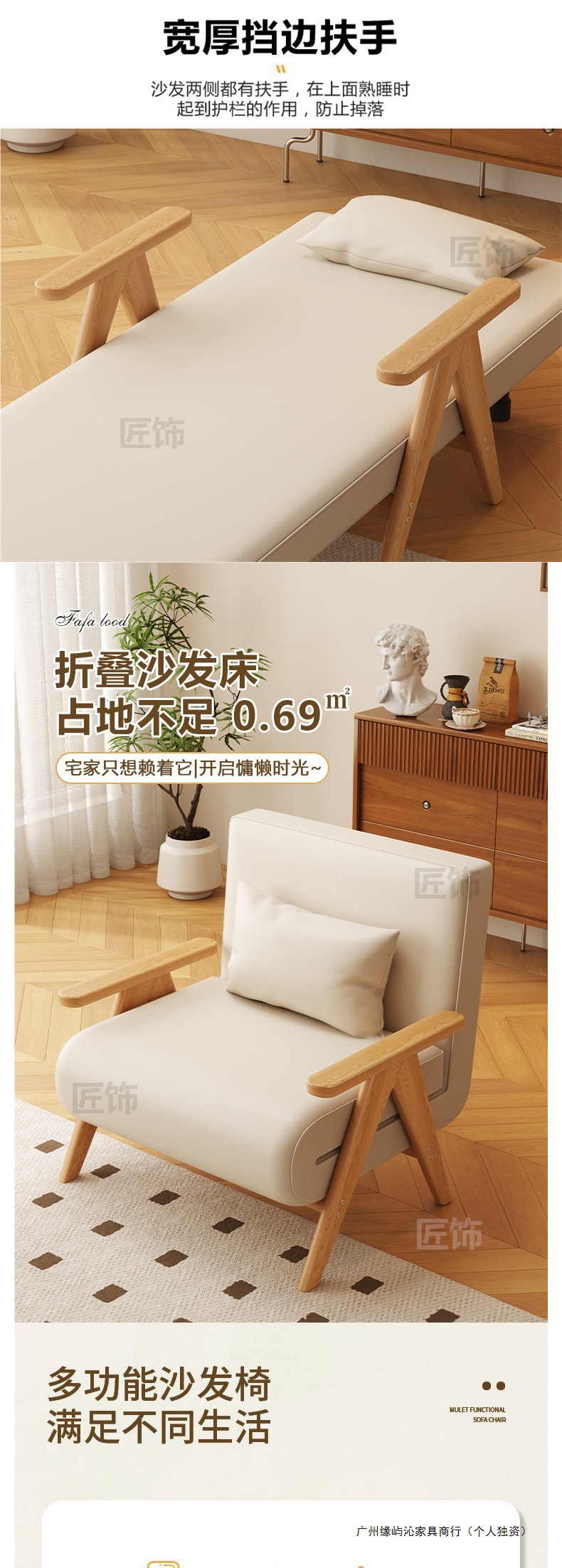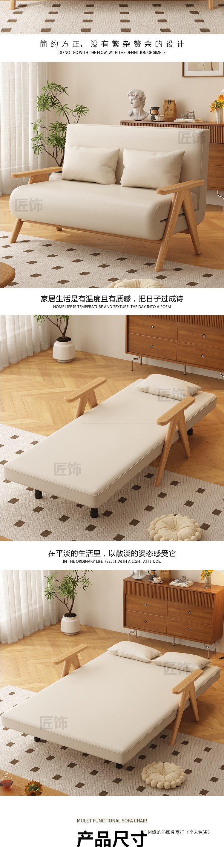 단단한 나무 소파 침대 접이식 이중 목적 침실 다기능 소파 의자 싱글 작은 아파트 수면 및 리클라이닝 개폐식 침대스토어 가기