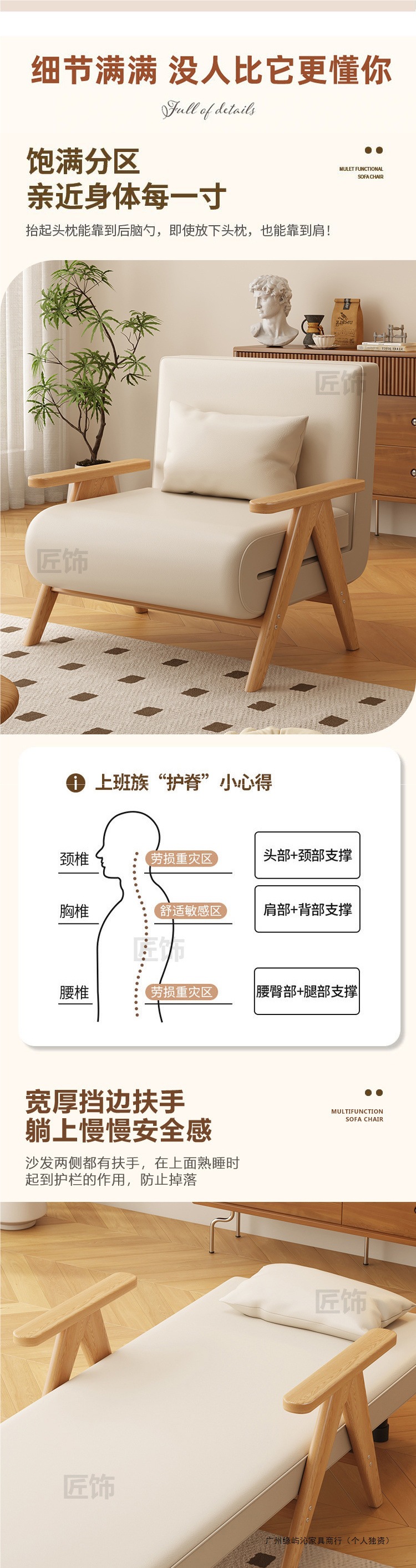 단단한 나무 소파 침대 접이식 이중 목적 침실 다기능 소파 의자 싱글 작은 아파트 수면 및 리클라이닝 개폐식 침대