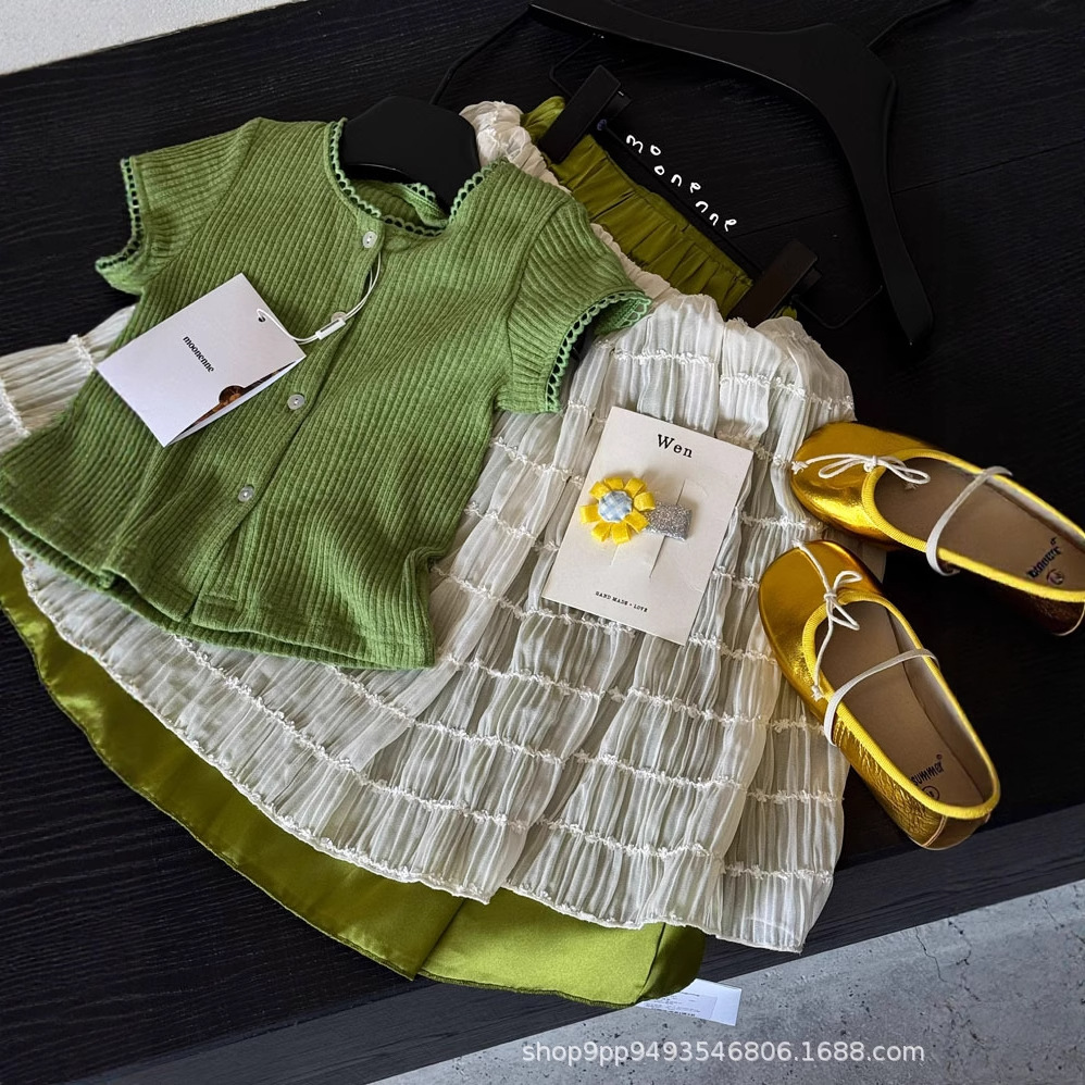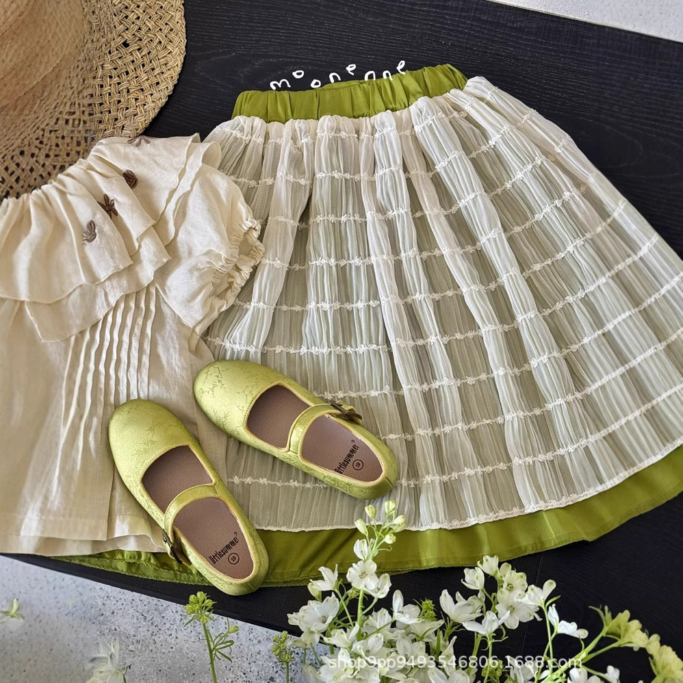 여자 스커트 2025 여름 새로운 스타일 솔리드 컬러 어린이 케이크 스커트 메쉬 공주 스커트 노출 방지 스커트스토어 가기