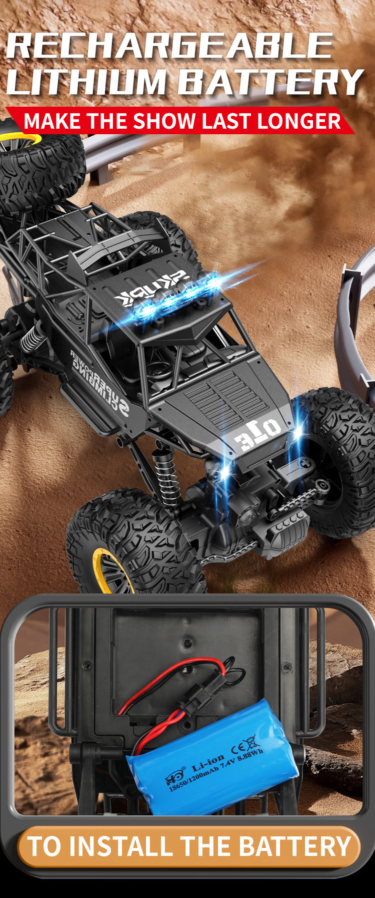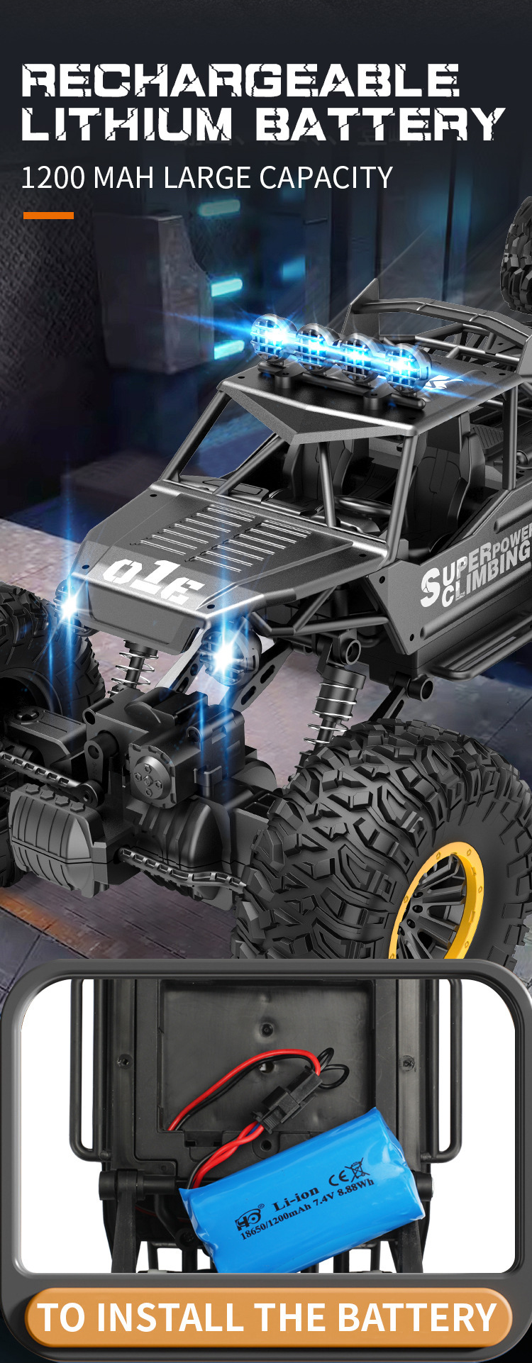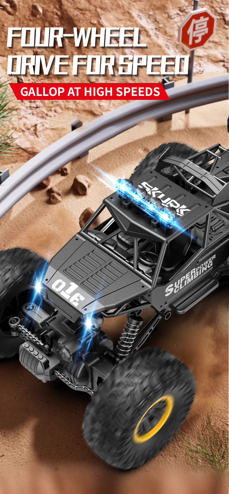 • [고속 및 저속으로 업그레이드 버전] 50cm 합금 클라이밍 카 블랙
