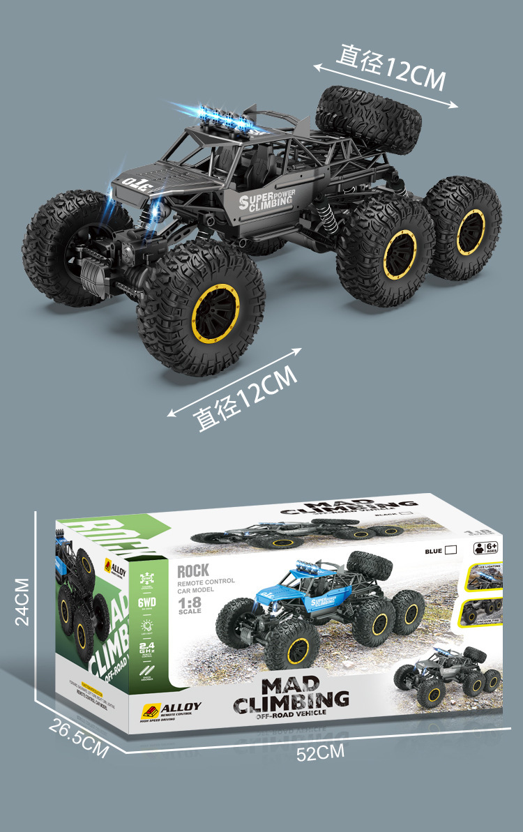 국경 간 합금 6륜 구동 오프로드 차량 전기 원격 제어 자동차 장난감 고속 6륜 등산 차량 산악 빅풋 몬스터스토어 가기