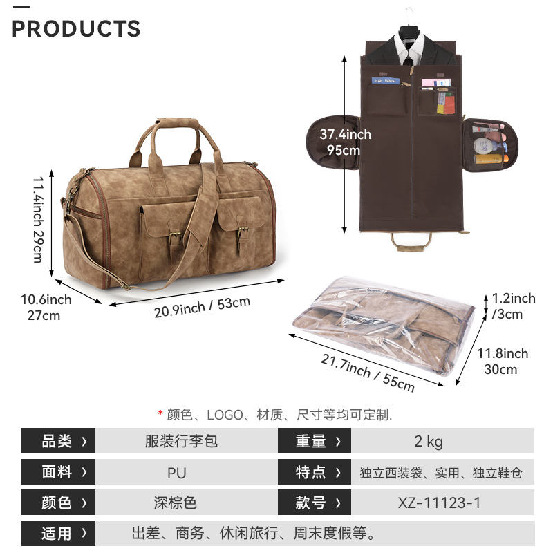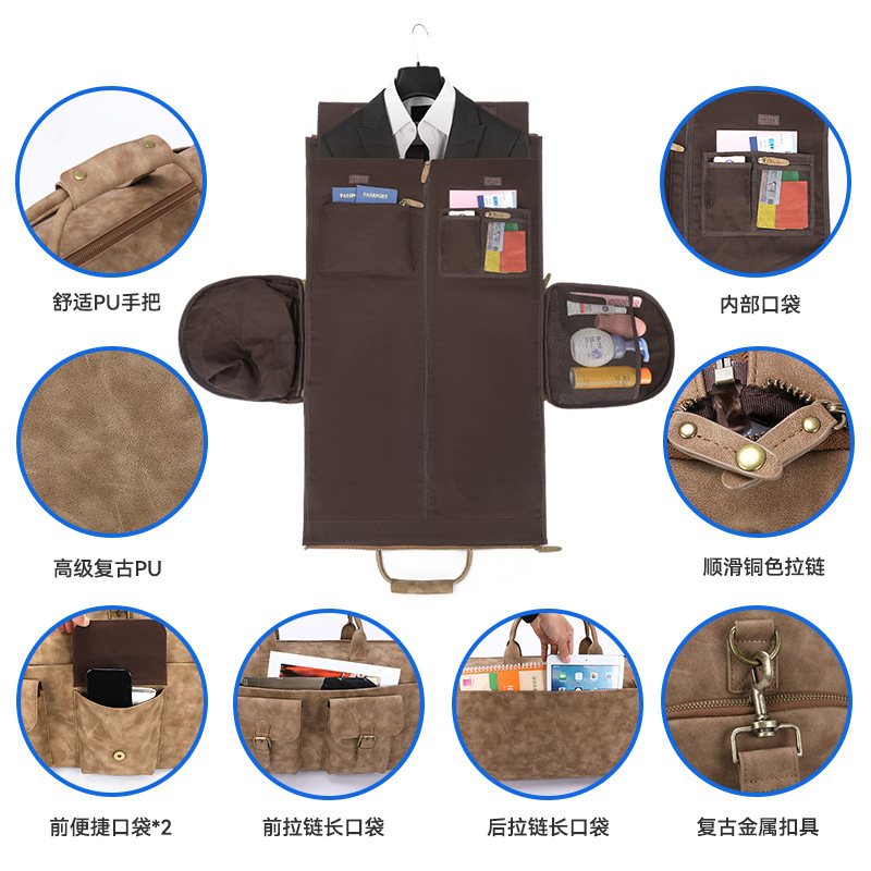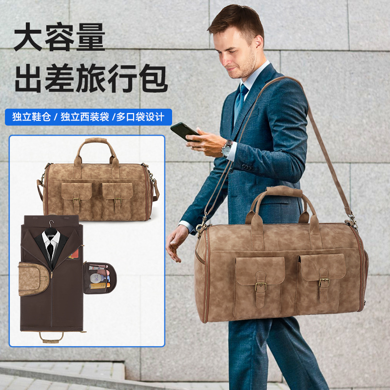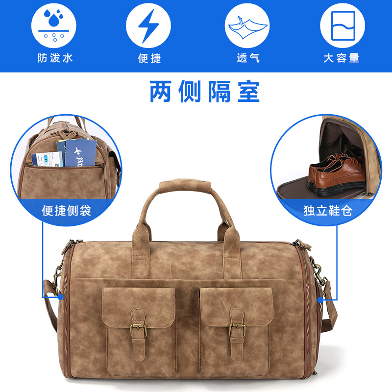 Crazy Horse PU 남성용 여행 가방 휴대용 단거리 출장 휴대용 수하물 가방 맞춤형 새로운 다기능 정장 가방스토어 가기