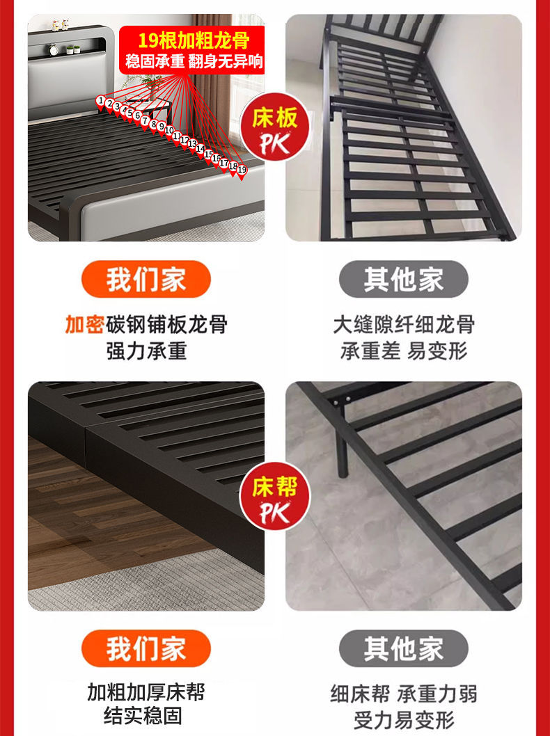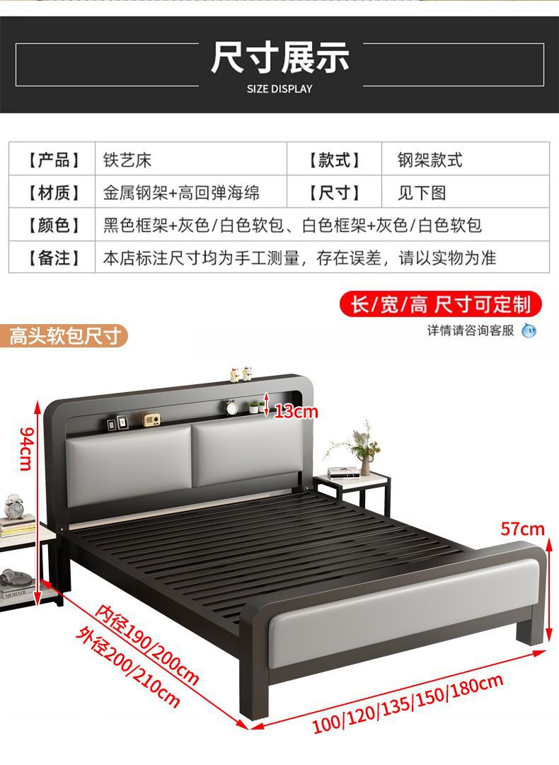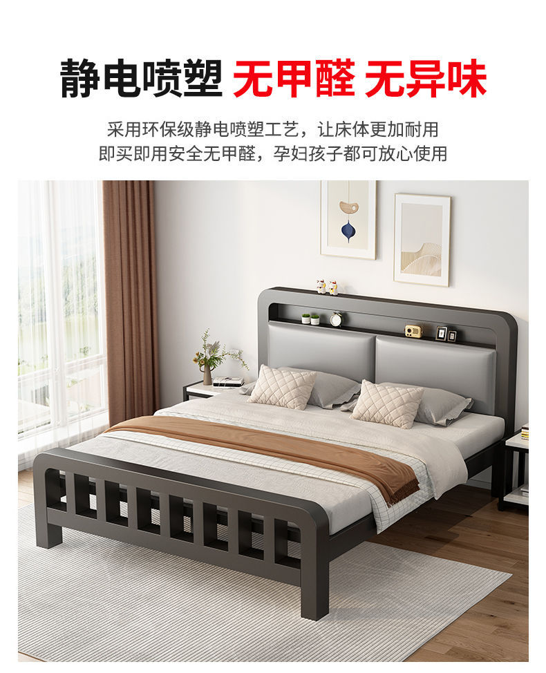 연철 침대, 바닥에서 천장까지 이어지는 더블 침대, 마스터 침실, 심플하고 고급스러운 기숙사 임대 주택, 싱글 침대, 철제 프레임 침대, 강화 및 두꺼운스토어 가기