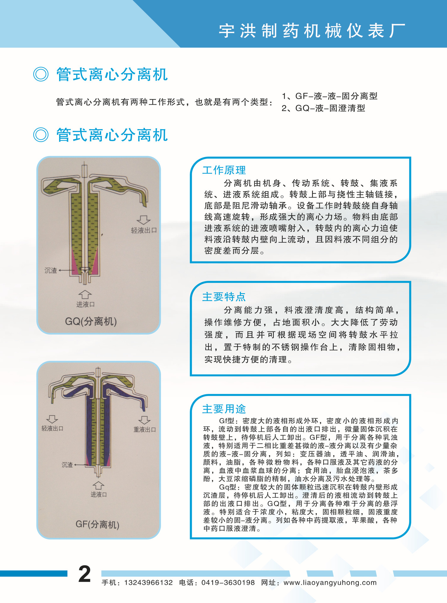 管式离心机有GF、GQ两大系列。