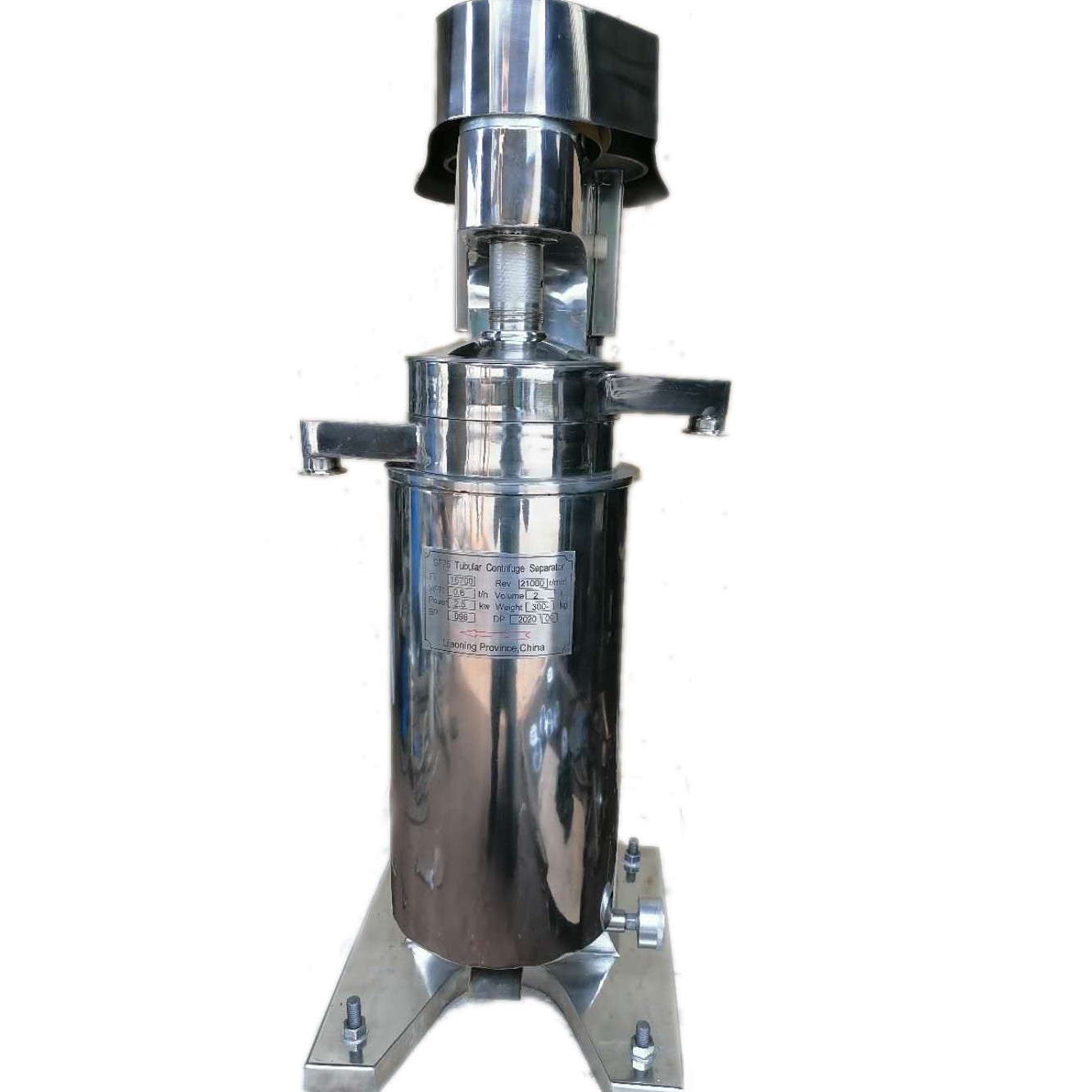 GQ—澄清型管式离心机,主要用于分离各种难于分离的悬浮液,特别是适合于浓度低、粘度大、固相颗粒细、固液比重度差较小的固液分离。