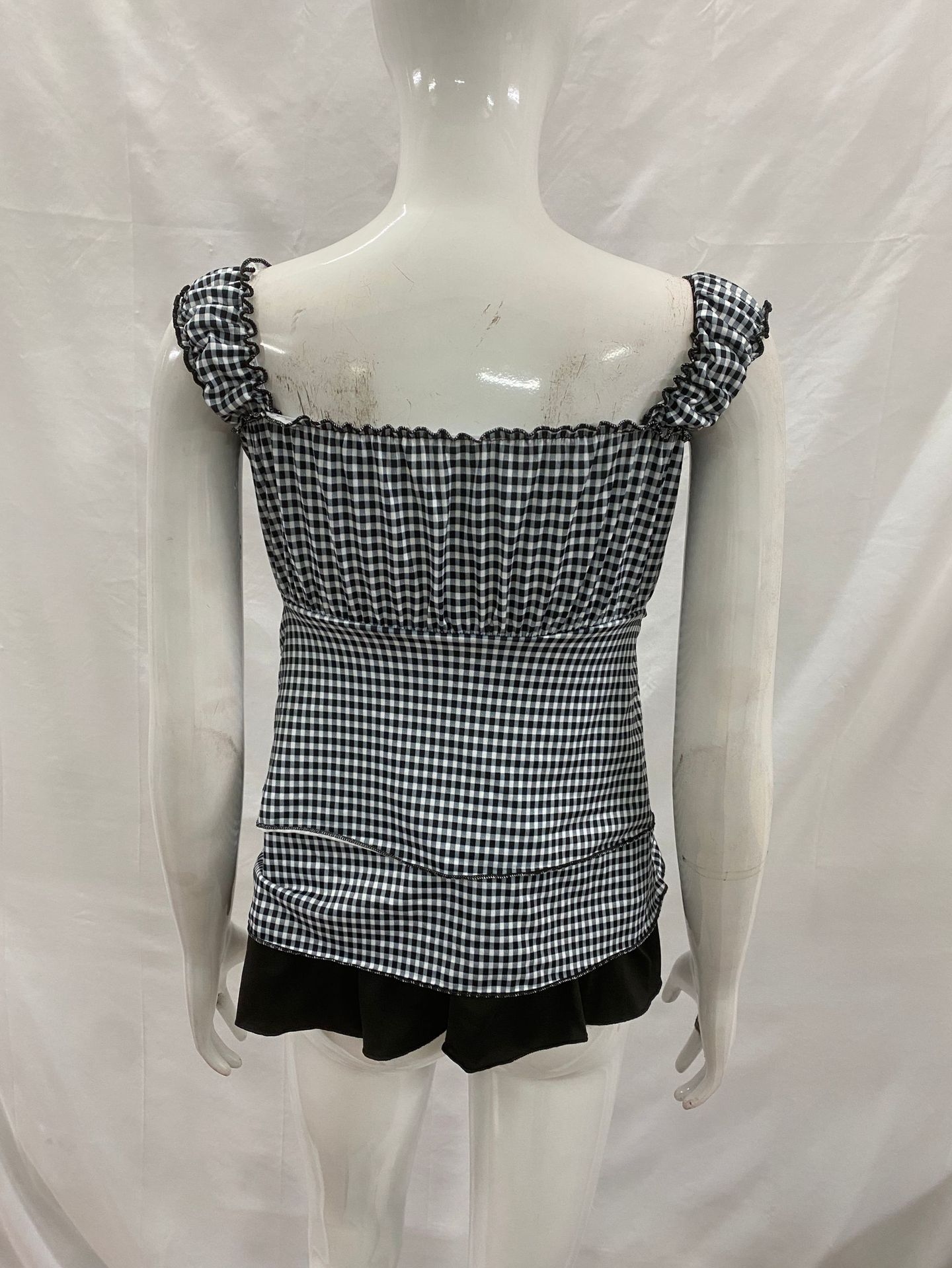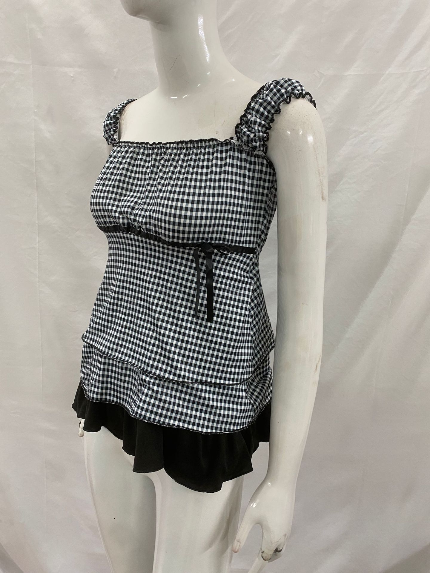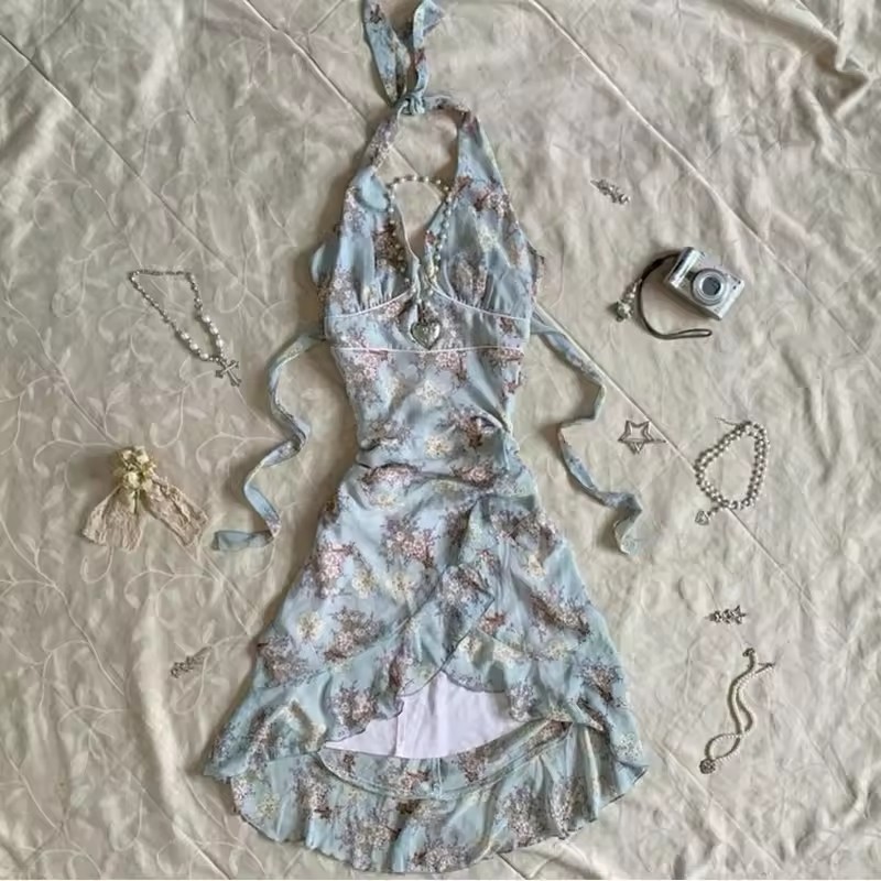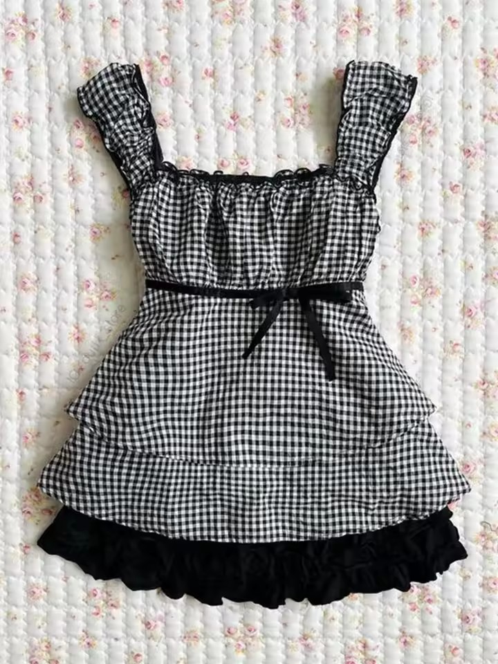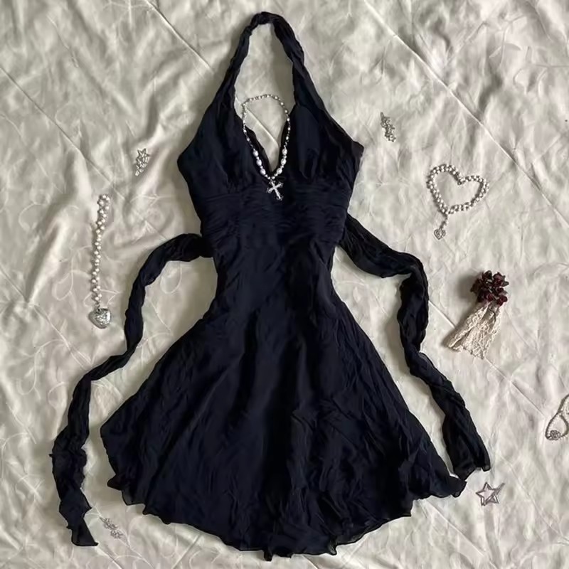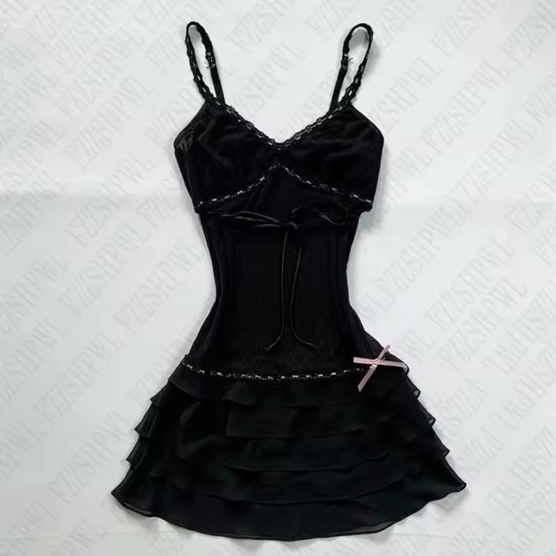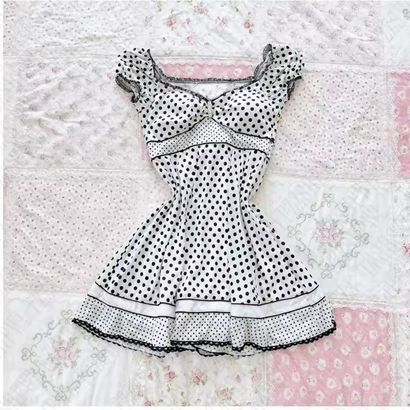 대외 무역 미국 패션 폴카 도트 솔리드 컬러 레이스 달콤한 소녀 스타일 서스펜더 반팔 서스펜더 허리 드레스스토어 가기
