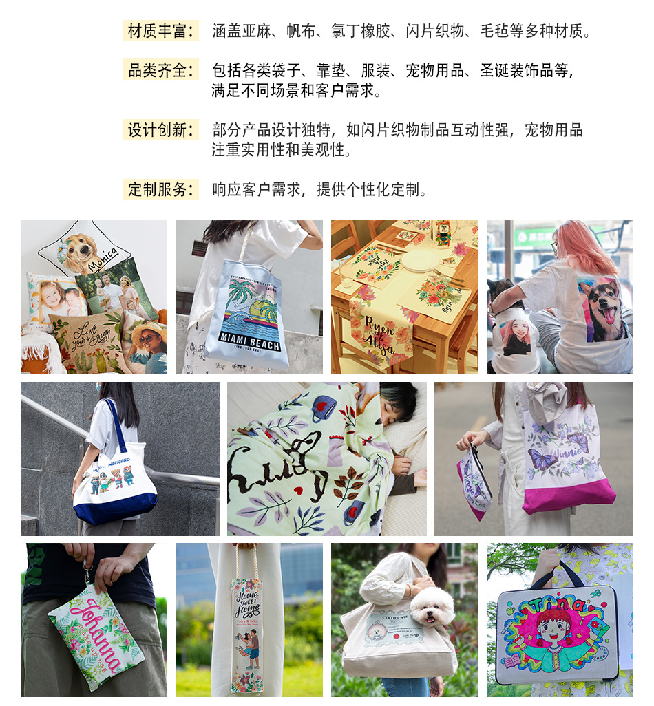 技术与产品是我们的核心。依托独立研发的先进3D曲面热转印技术,我们可以在各种不规则的塑料面上进行印图加工,图案完美贴覆,颜色鲜艳,不脱色,从而使表面不规则、有曲度的产品实现高质高效的印图,也推动产品的不断创新。我们的特色品类包括餐具、杯具、户外饮具、饭钥匙扣、冰箱贴、拼图、手机壳、眼镜等,行业涵盖家居用品、装饰品、工艺礼品、宠物用品、商务宣传、创意产品、文化周边等。同时我们利用完全自有管理的生产线,提供新产品开发服务,为印制复杂的塑料产品提供专业、经济的解决方法。