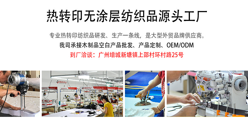 广州辉悦塑料有限公司专注塑料热转印产品的生产加工,是SUN-FLY SUBLIMATION的直属工厂,主要供应大批量高质塑料热转印产品的外贸出口。辉悦塑料厂集工厂、产品、及印刷服务于一体,是塑料印图产品的龙头厂家,及专业印刷服务供应商。工厂位于广州市增城区,拥有近20年生产经验,积累了成熟的生产线及技术实力,形成研发、制造、服务一线的生产中心,生产设备完备,包括塑料模具制造系统,自动化注塑机,热转印印图生产线,平面、曲面、及异形产品印图设备等。