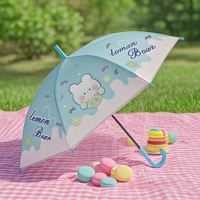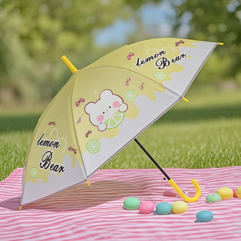완전 자동 젖빛 투명 곰 어린이 우산 8 가닥 곡선 손잡이 ins 스타일 초등학생 귀여운 만화 태양 우산스토어 가기