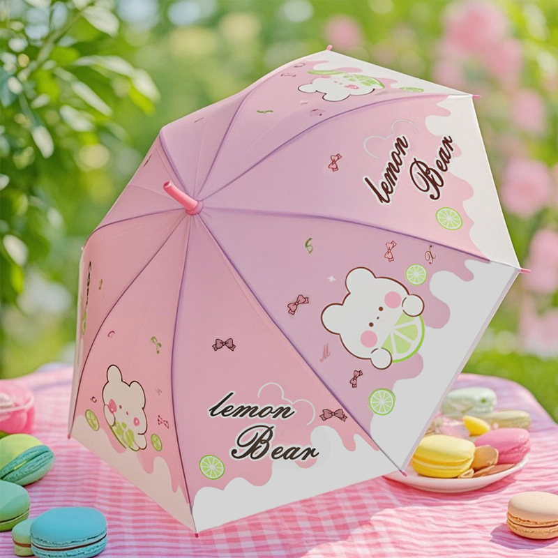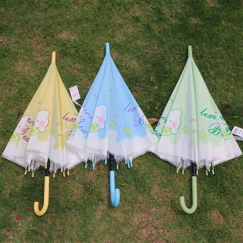 완전 자동 젖빛 투명 곰 어린이 우산 8 가닥 곡선 손잡이 ins 스타일 초등학생 귀여운 만화 태양 우산