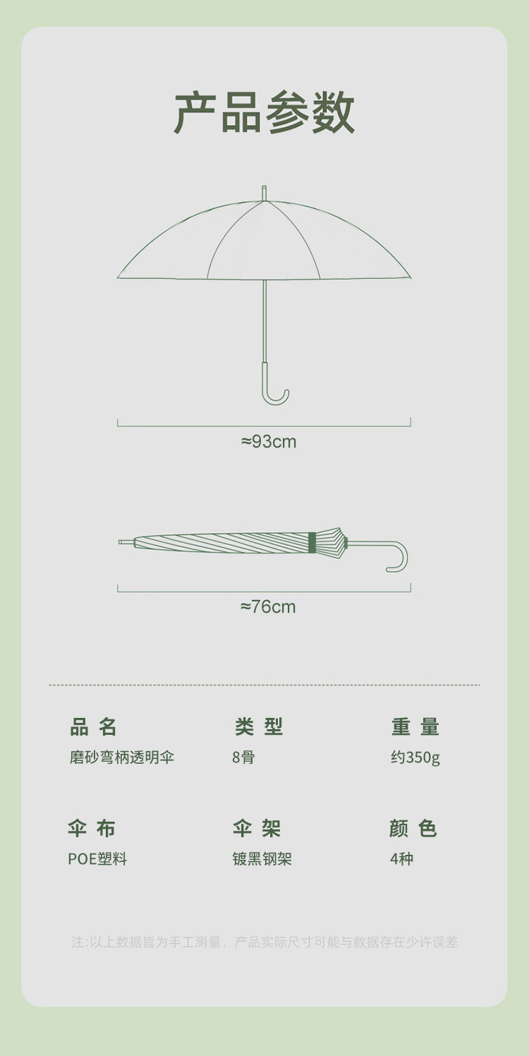 • 팬더 반투명 곡선 핸들 우산#녹색