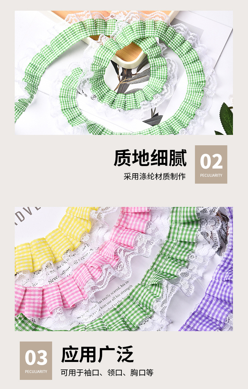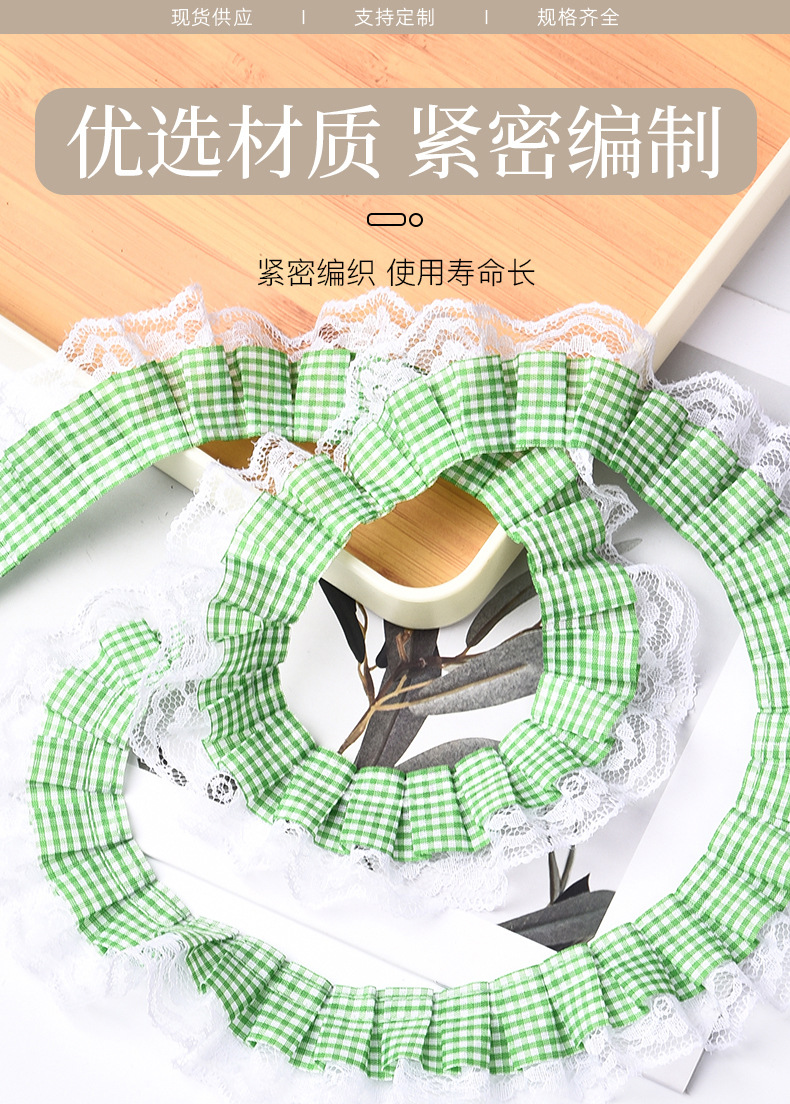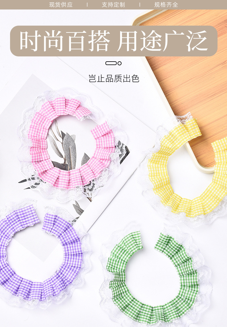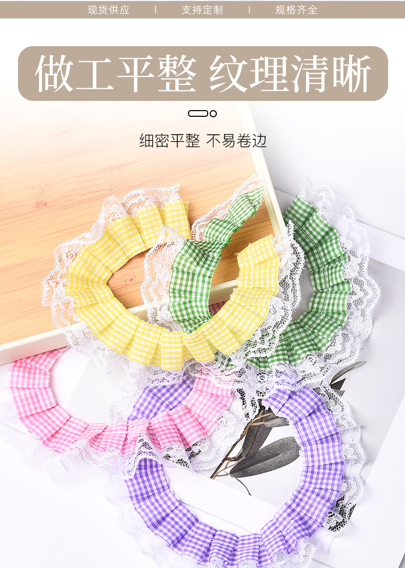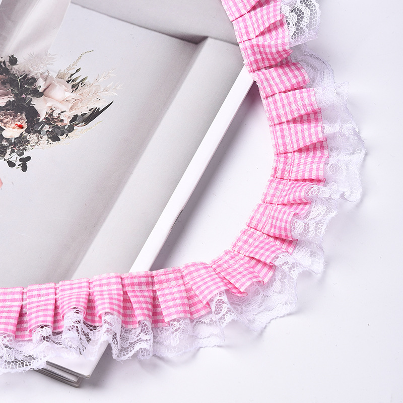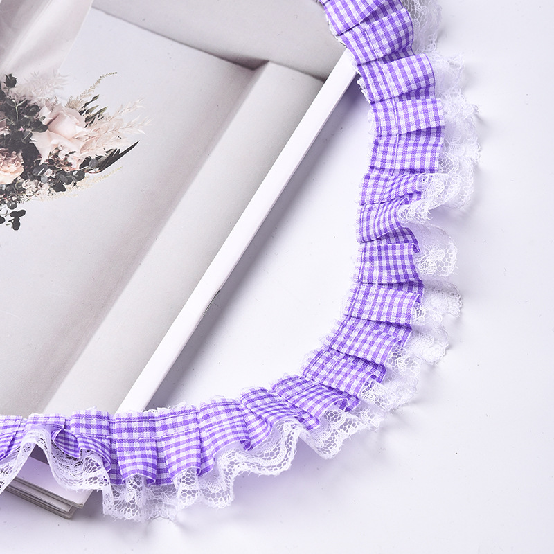 격자 무늬 접합 레이스 주름 주름 레이스 액세서리 의류 장식 재료 인형 스커트 레이스 액세서리스토어 가기