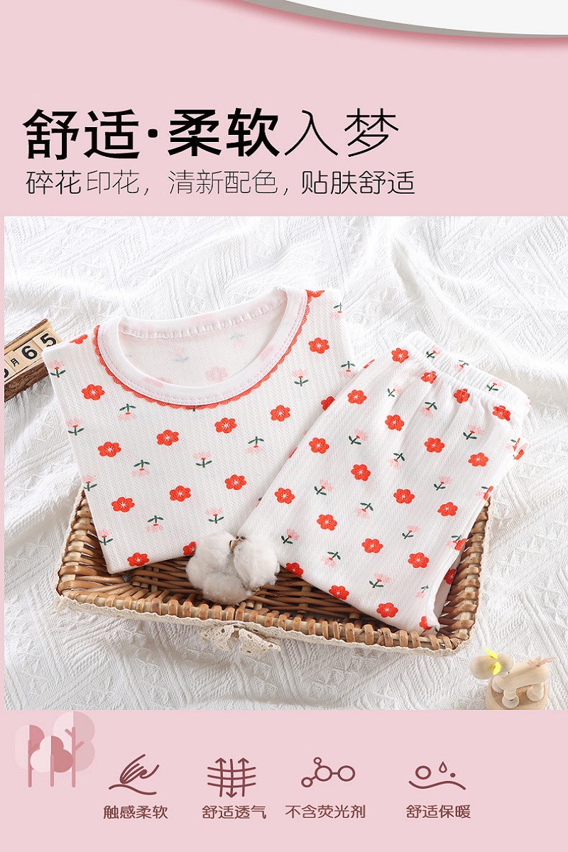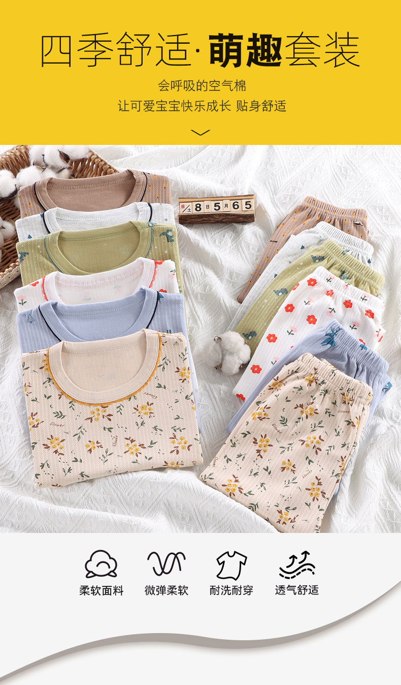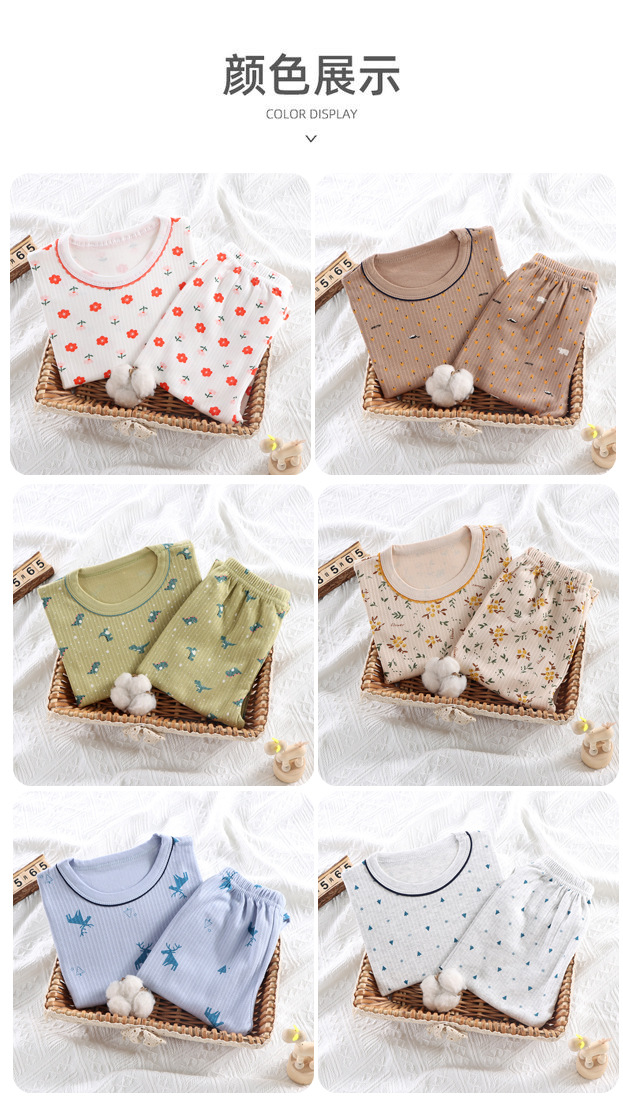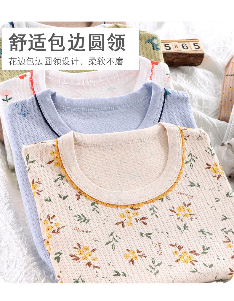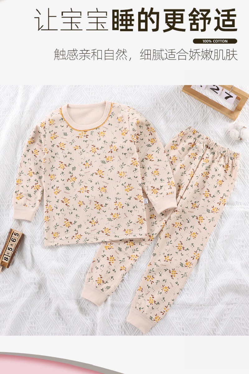 [맞춤형] 아동 가을 겨울 면 보온 속옷, 남녀 아기 레이스 칼라 잠옷, 가을 옷과 긴 바지 세트스토어 가기