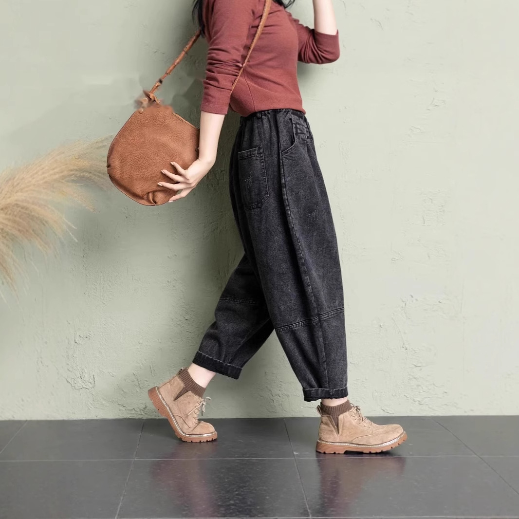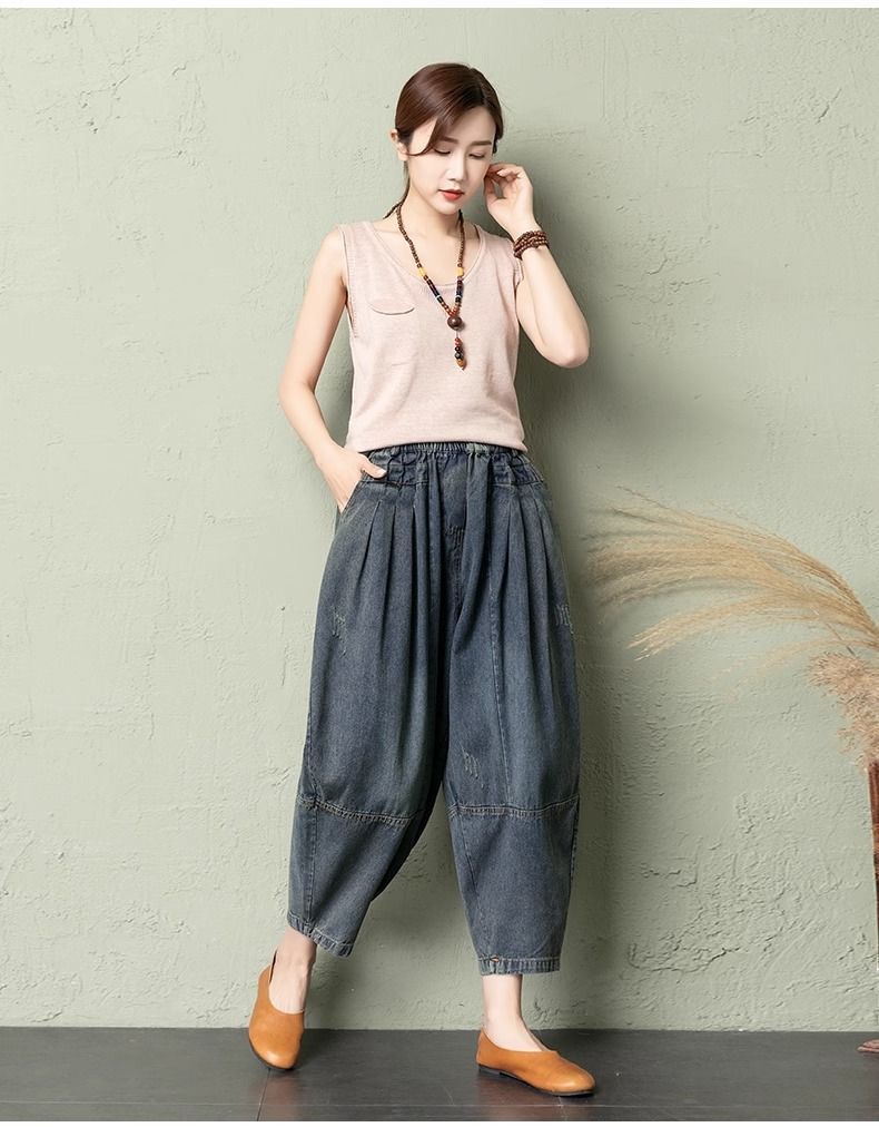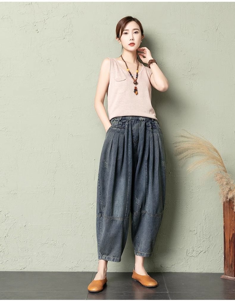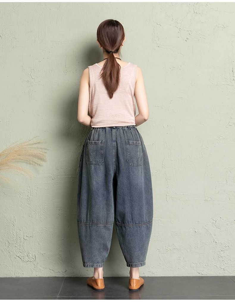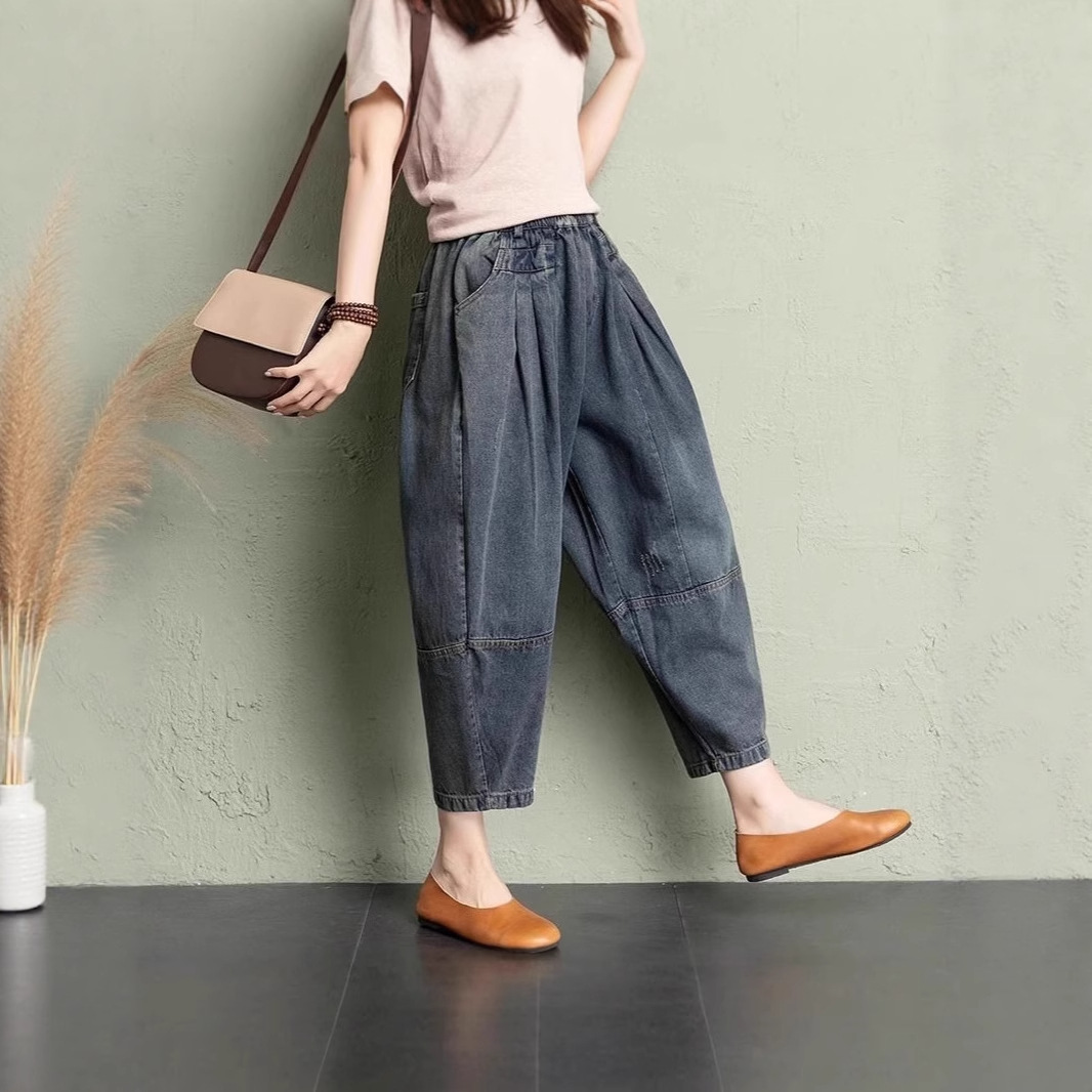 데님 당근팬츠 여성 와이드 레그 9부 가을 신상 빅사이즈 루즈한 하렘팬츠 얇은 슬리밍 여름 아빠팬츠