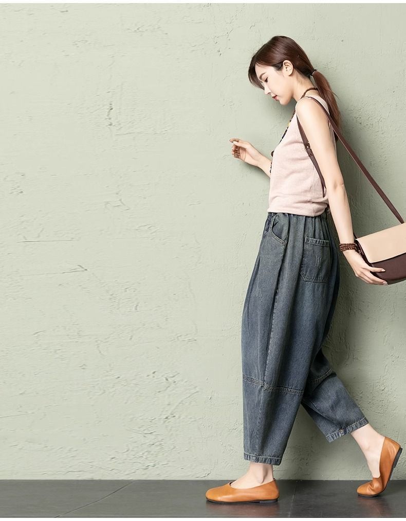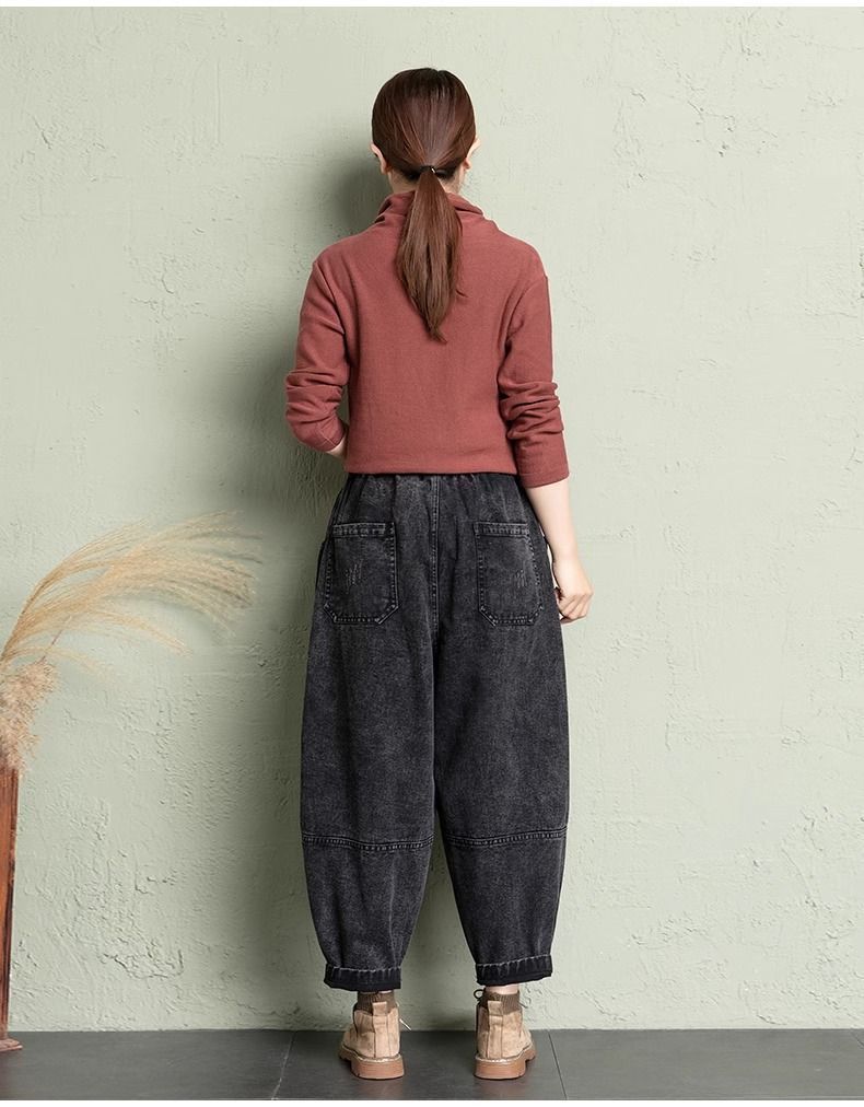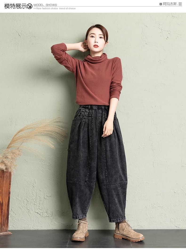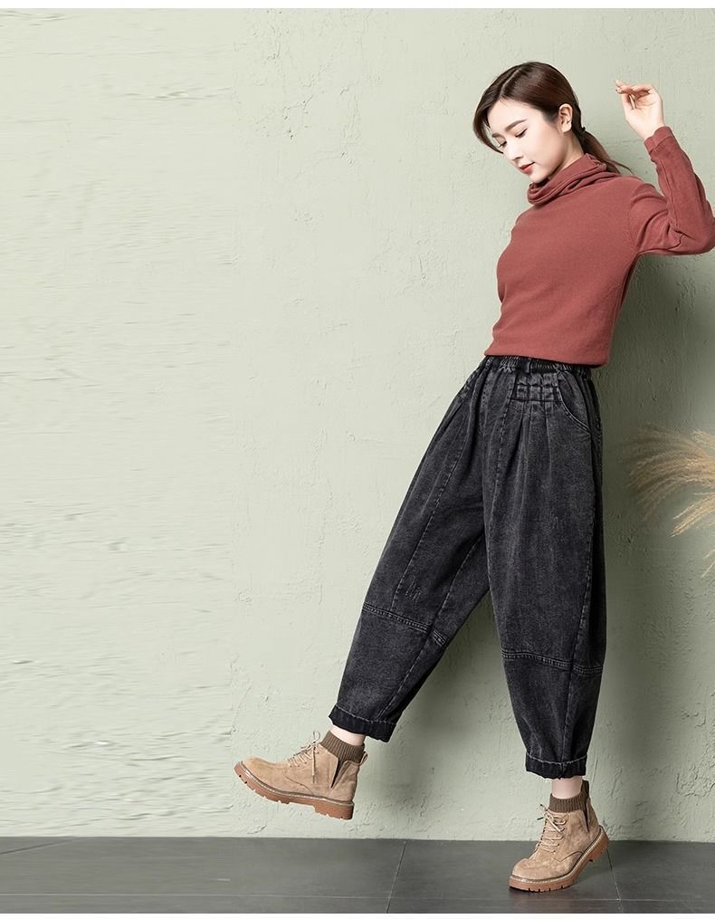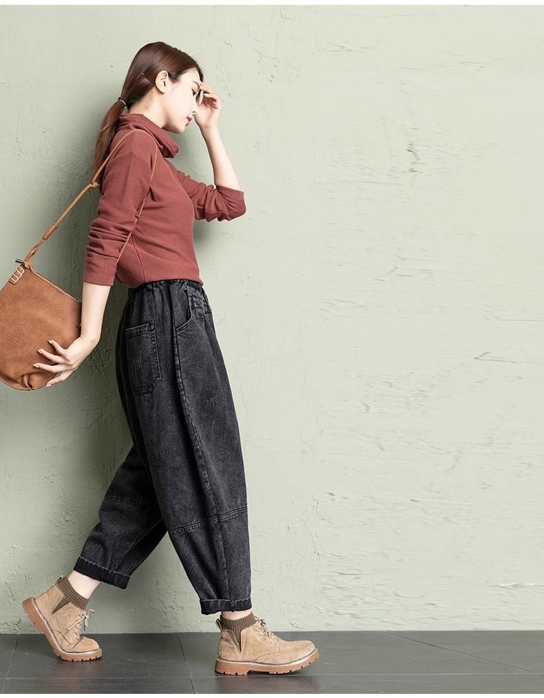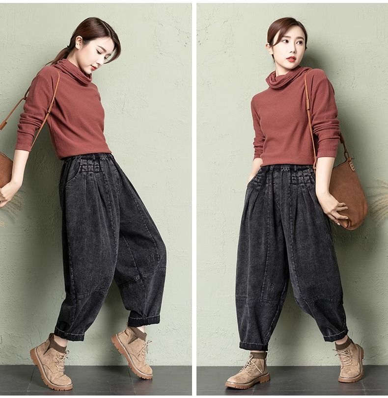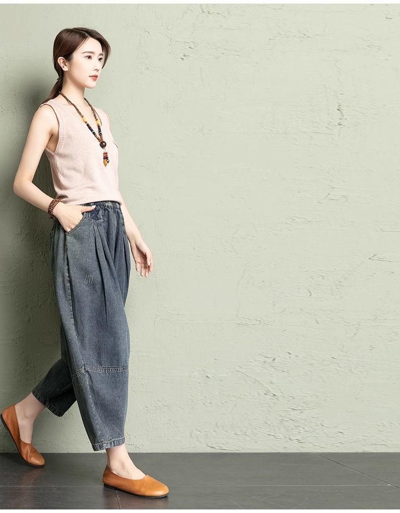 데님 당근팬츠 여성 와이드 레그 9부 가을 신상 빅사이즈 루즈한 하렘팬츠 얇은 슬리밍 여름 아빠팬츠스토어 가기