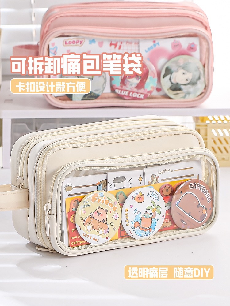 인스 스타일 투명 필통, 소형 펜케이스, DIY 재료, 새로운 디자인, 남아용, 10단 대용량 문구류스토어 가기