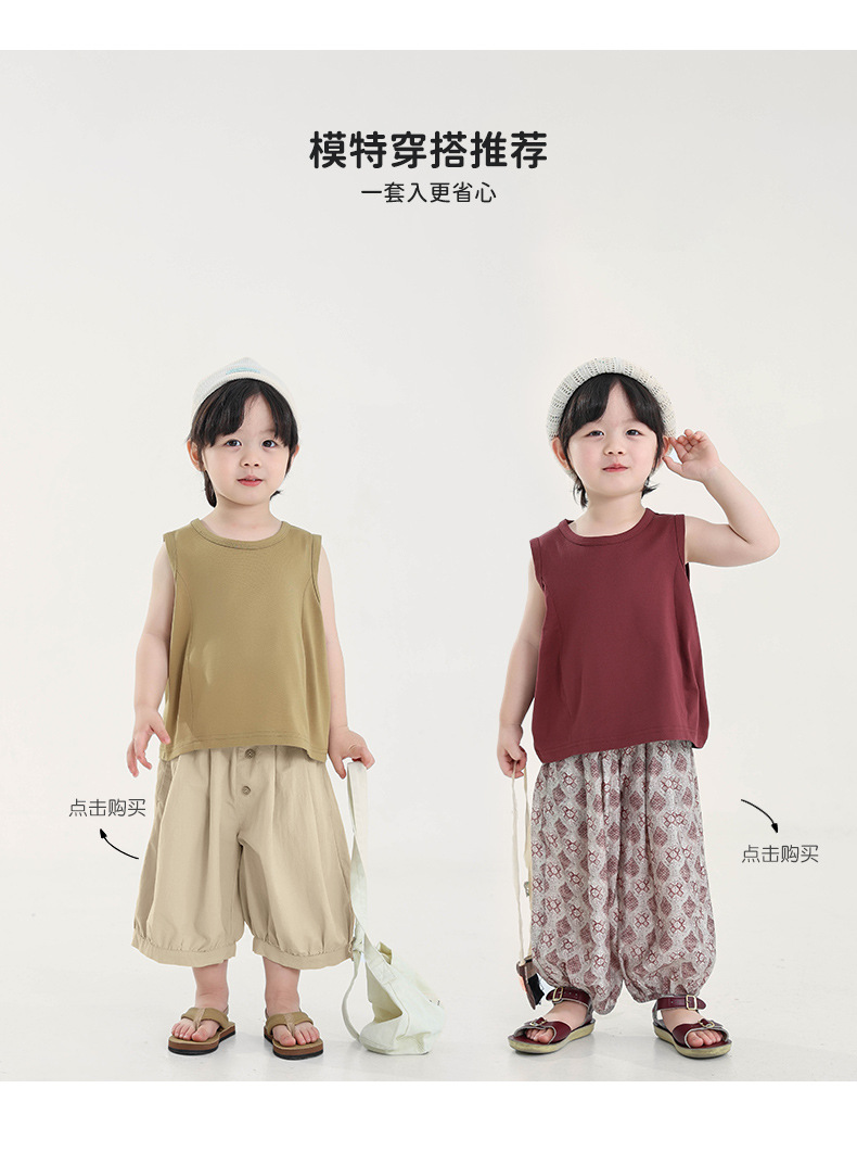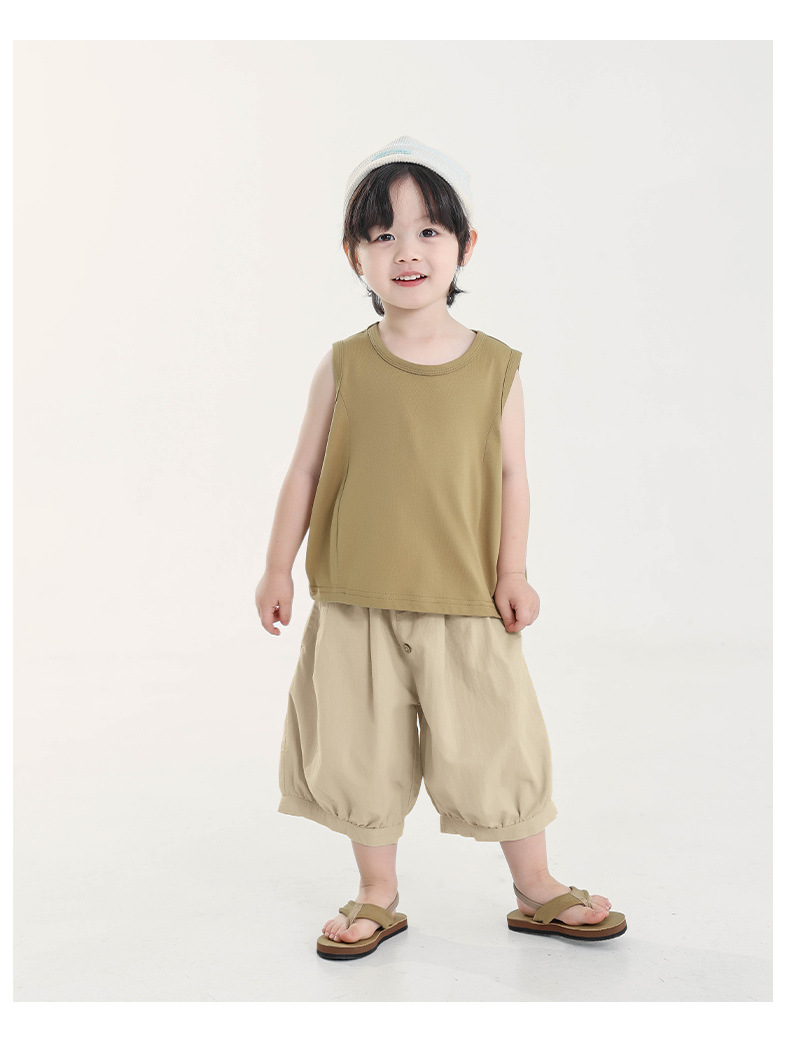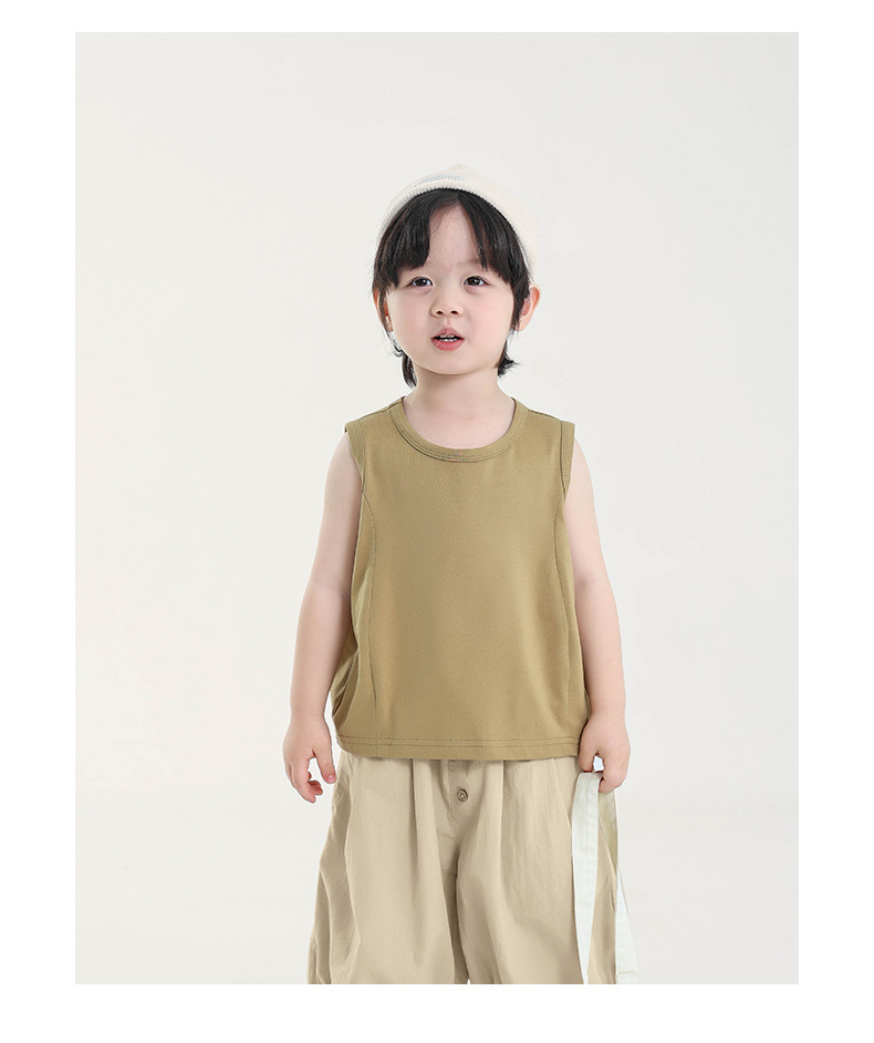 Changguo 아동복 소년 조끼 겉옷 여름 신작 아동 한국어 버전 단색 민소매 탑 아동 티셔츠스토어 가기