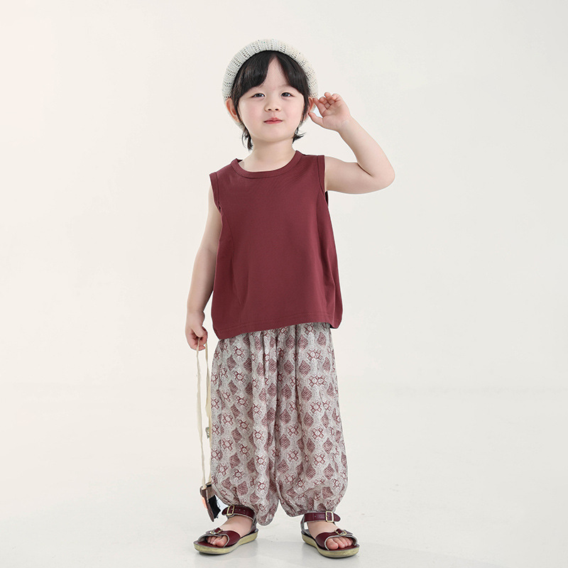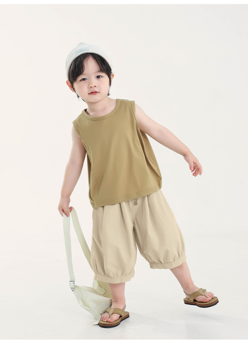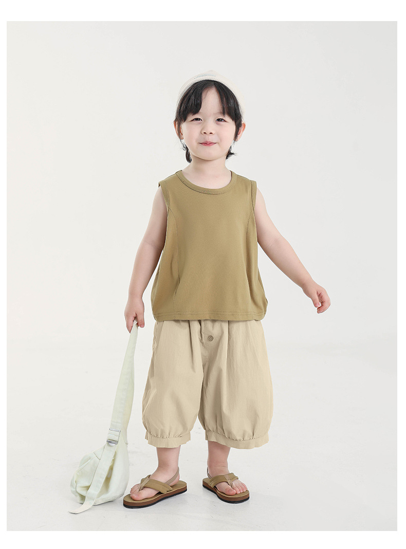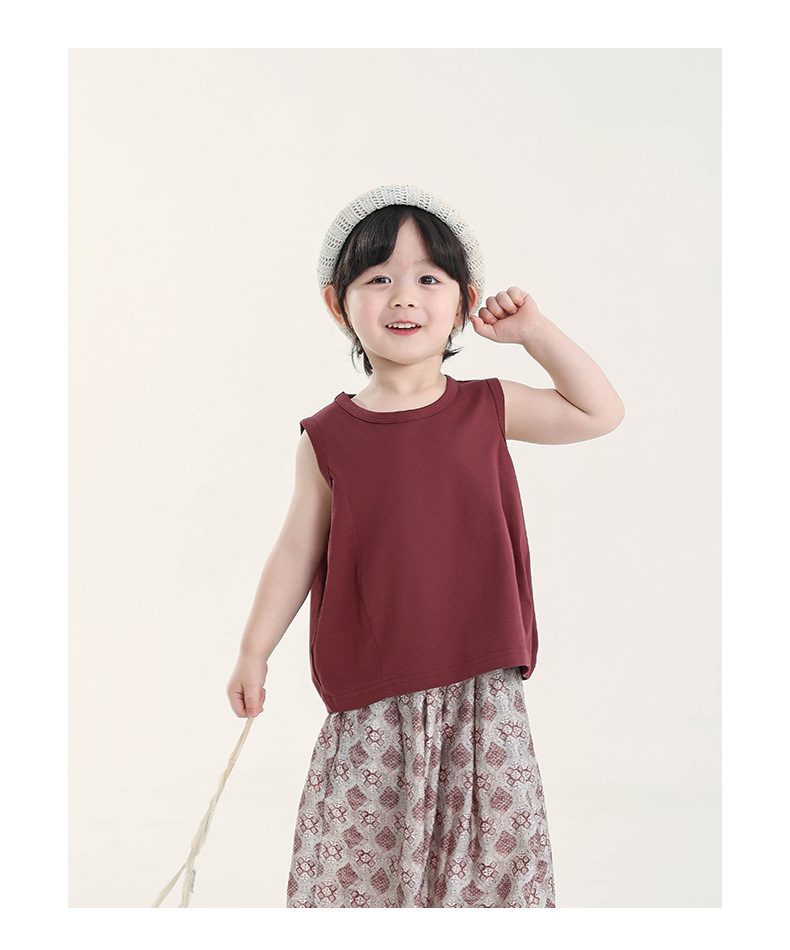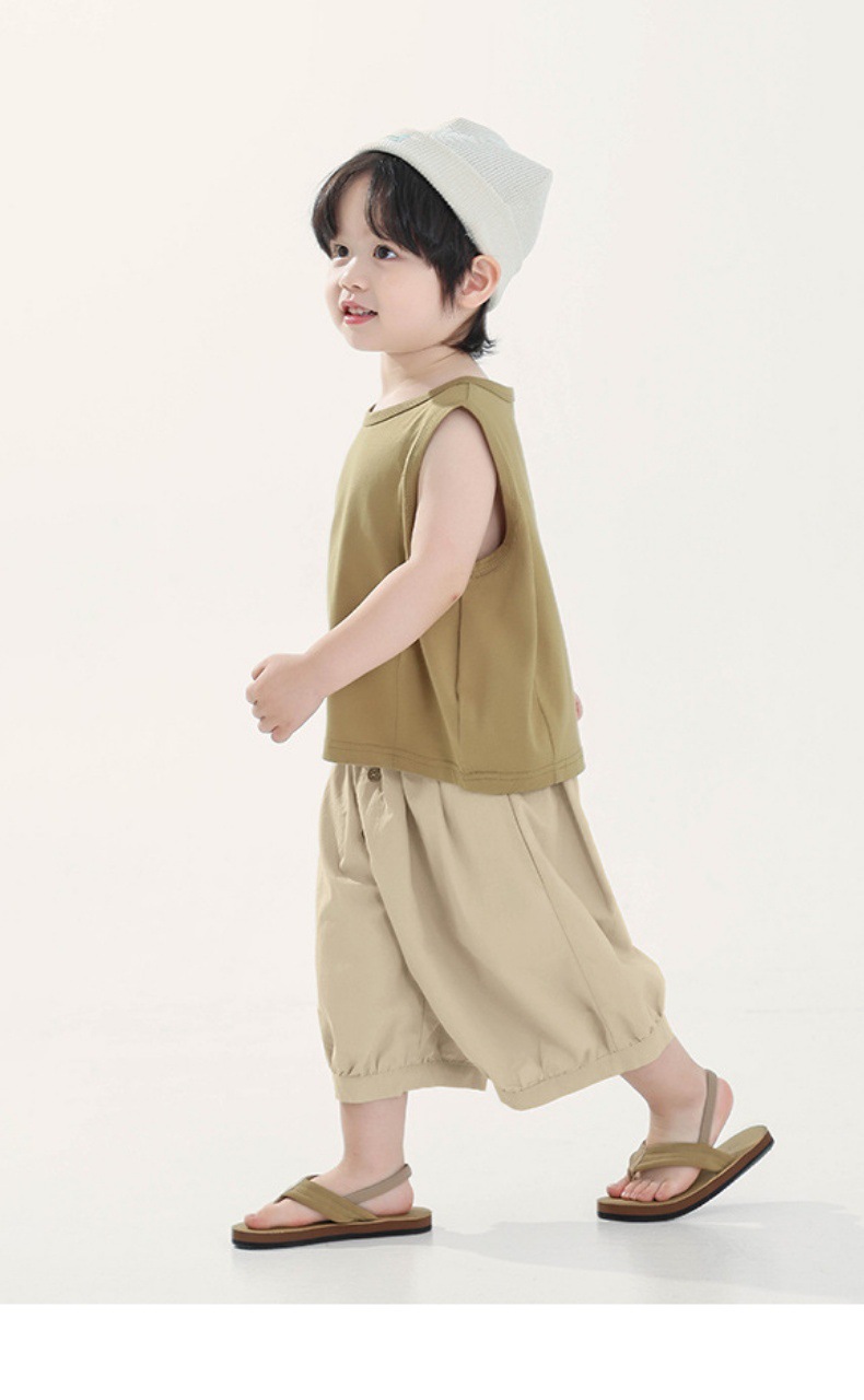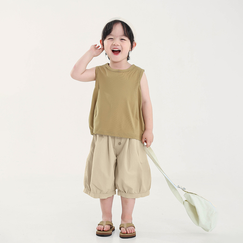 Changguo 아동복 소년 조끼 겉옷 여름 신작 아동 한국어 버전 단색 민소매 탑 아동 티셔츠