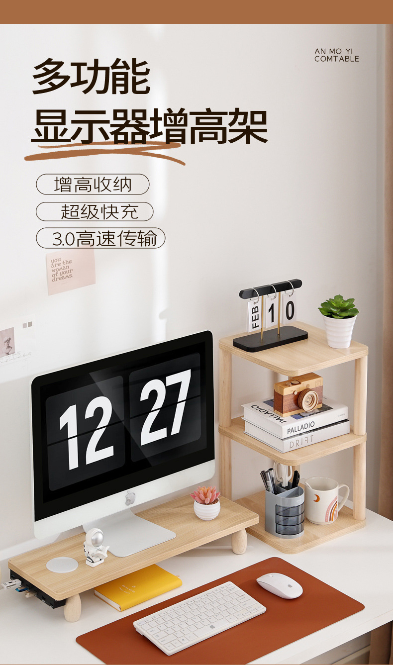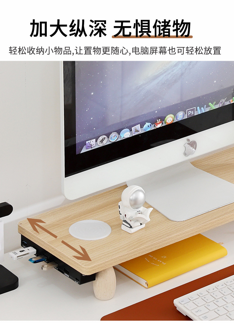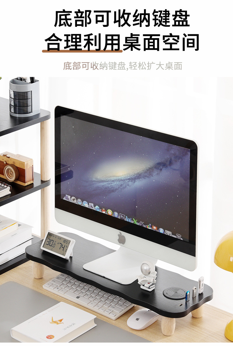 데스크탑 책상 컴퓨터 높이 조절 모니터 다기능 USB 무선 충전 e-스포츠 데스크탑 스토리지 랙스토어 가기