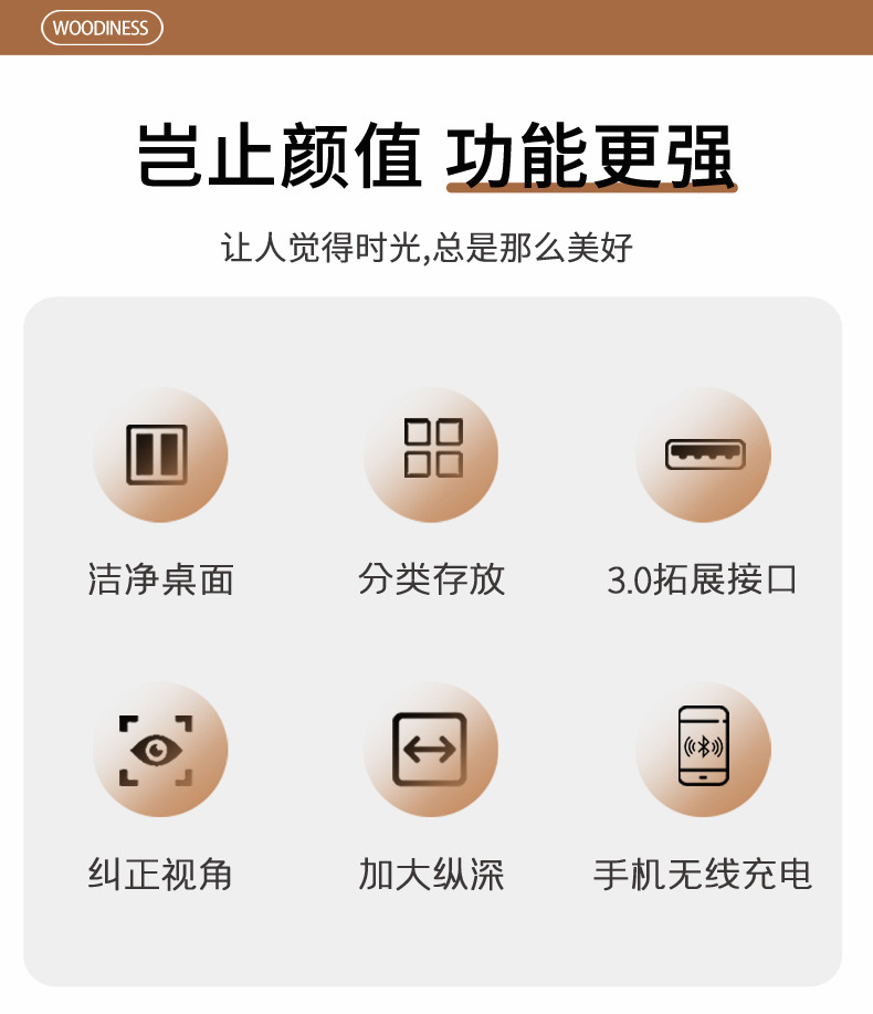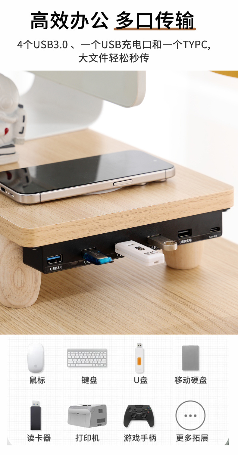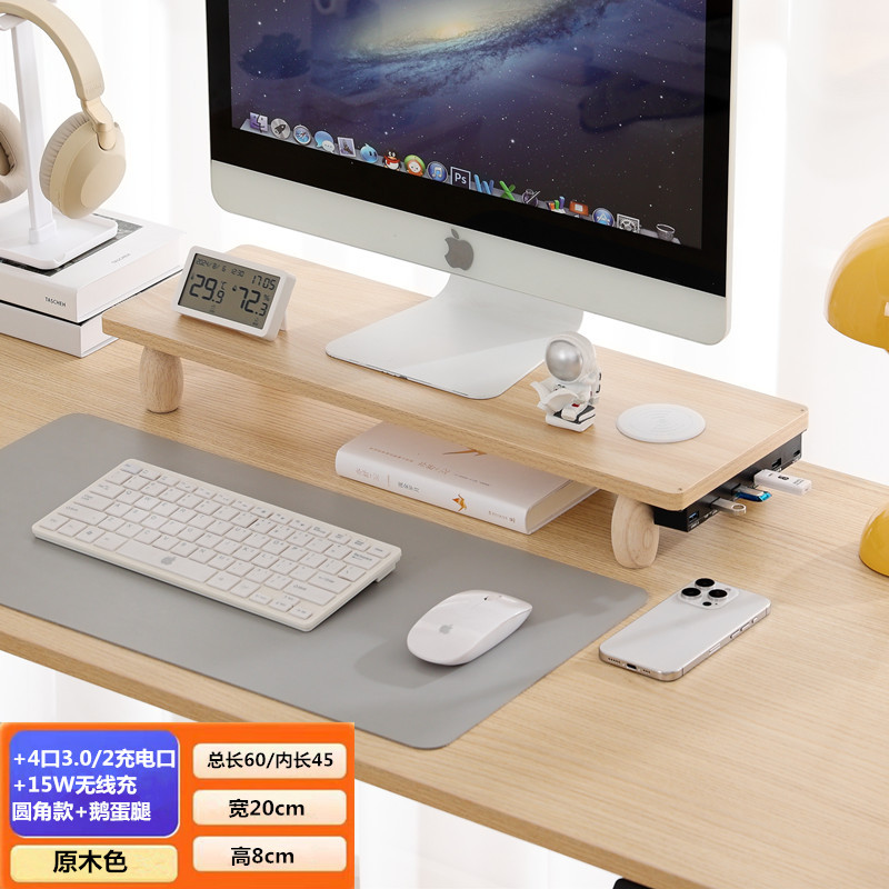 • 우드 컬러 [측면 USB2.0 + 무선 충전] 둥근 모서리