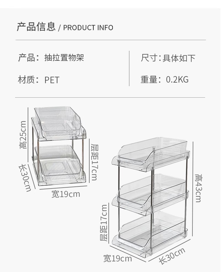 产品尺寸:2层:30*19*25CM、3层:30*19*42.5CM(人工测量会有误差,仅供参考)