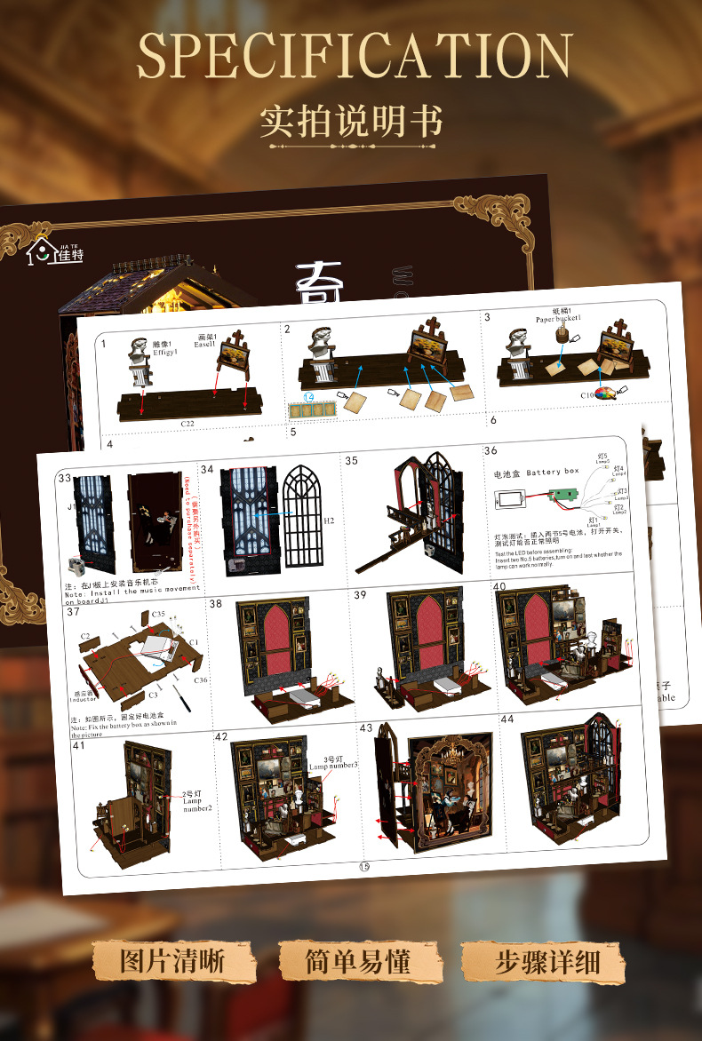 制作说明:制作过程中需要,美工刀、剪刀、镊子、尺子、螺丝刀、酒精胶等工具(工具,酒精胶、音乐机芯需要另外购买)