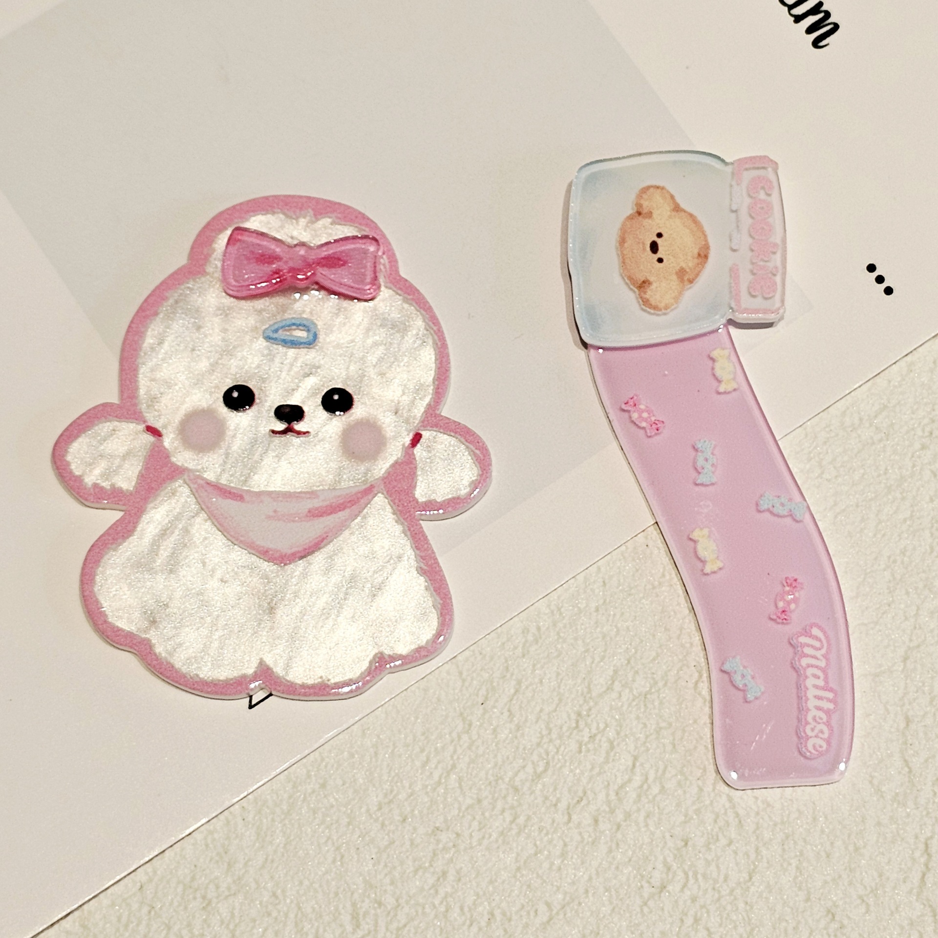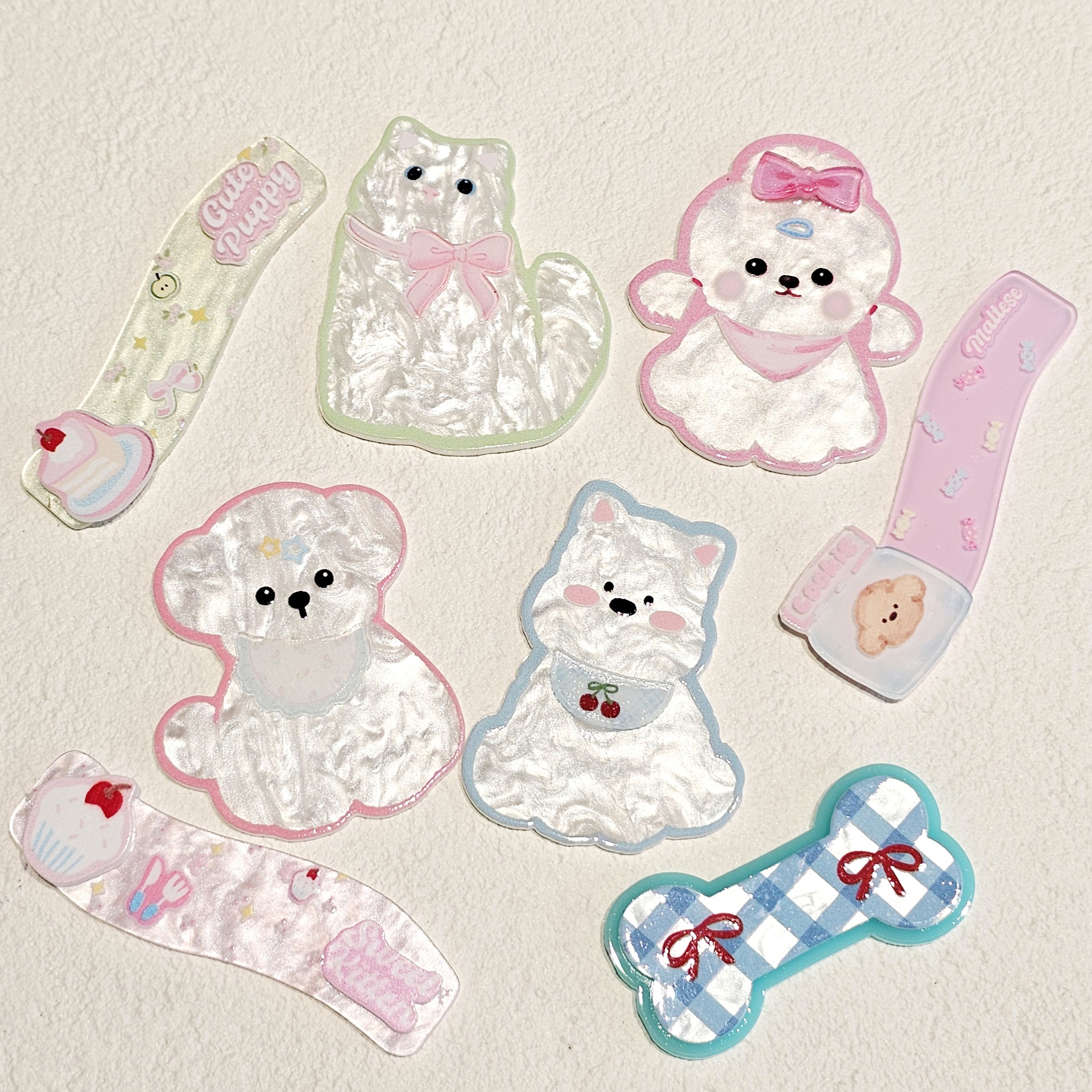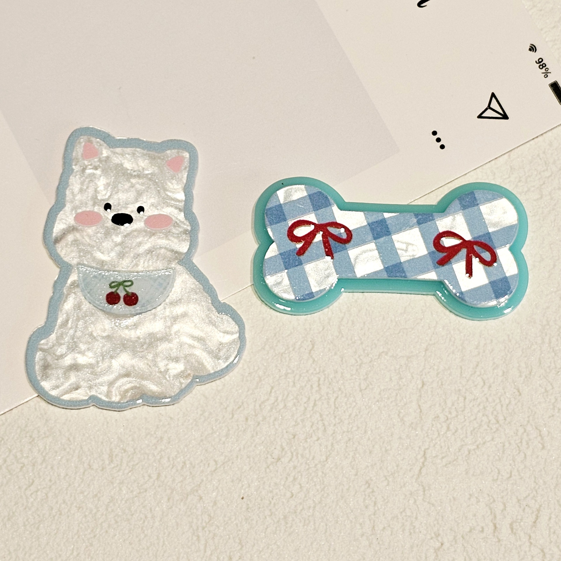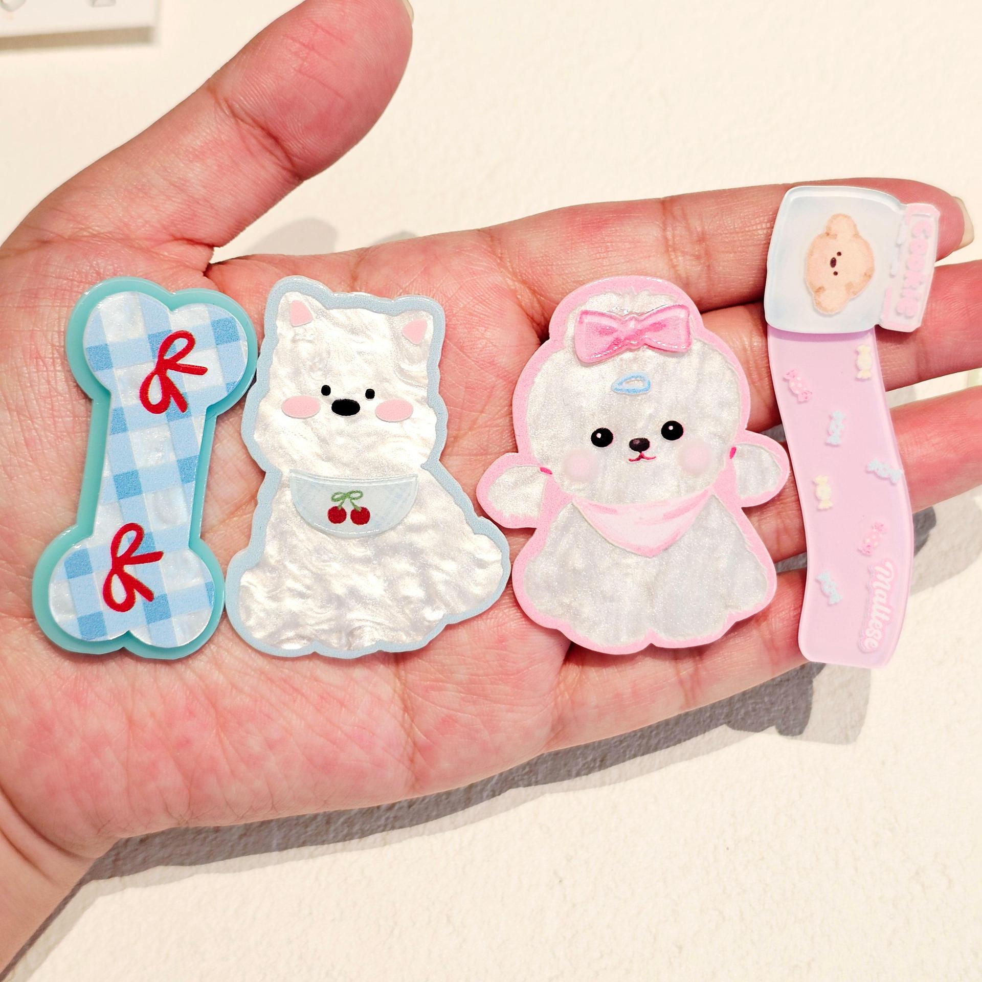Xiaohongshu 웨스트 하이랜드 개 더블 레이어 아크릴 패치 머리 장식 bb 클립 휴대 전화 케이스 나막신 diy 쥬얼리 액세서리스토어 가기