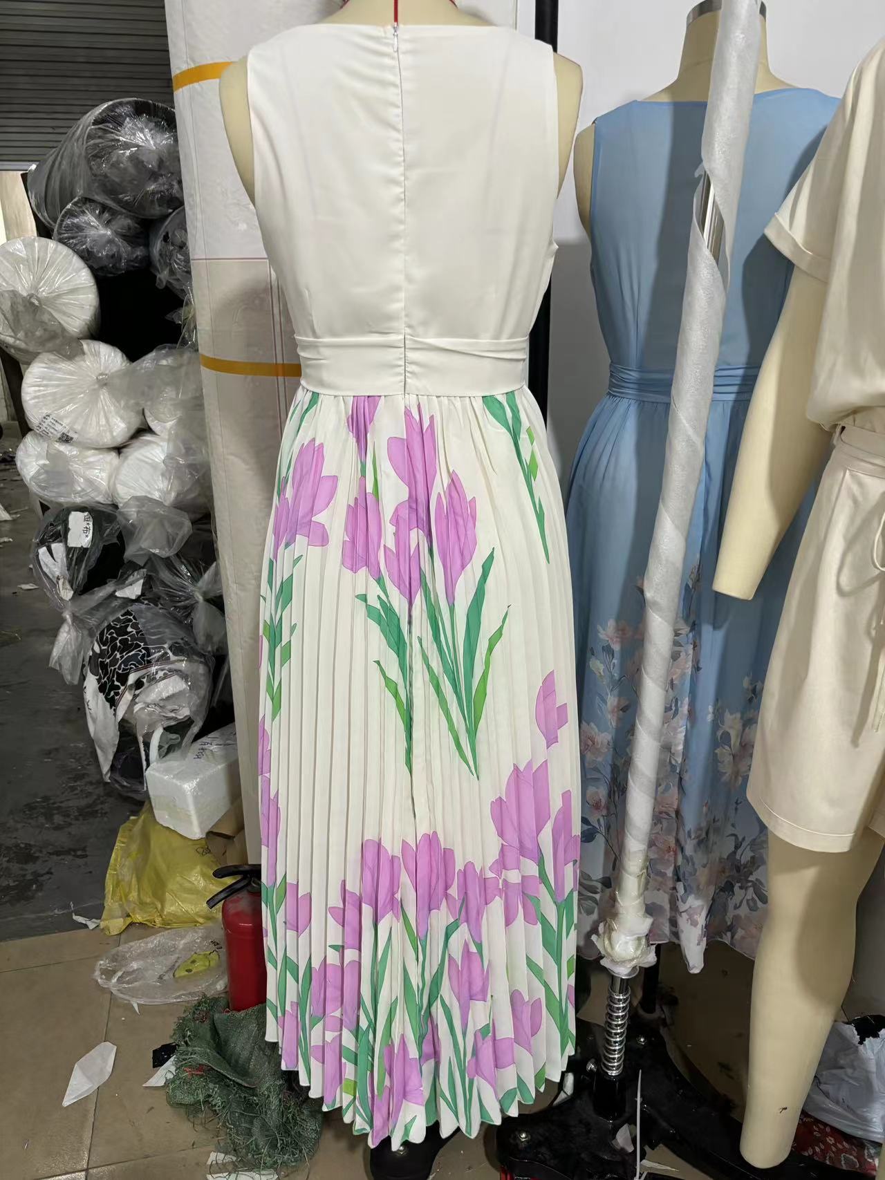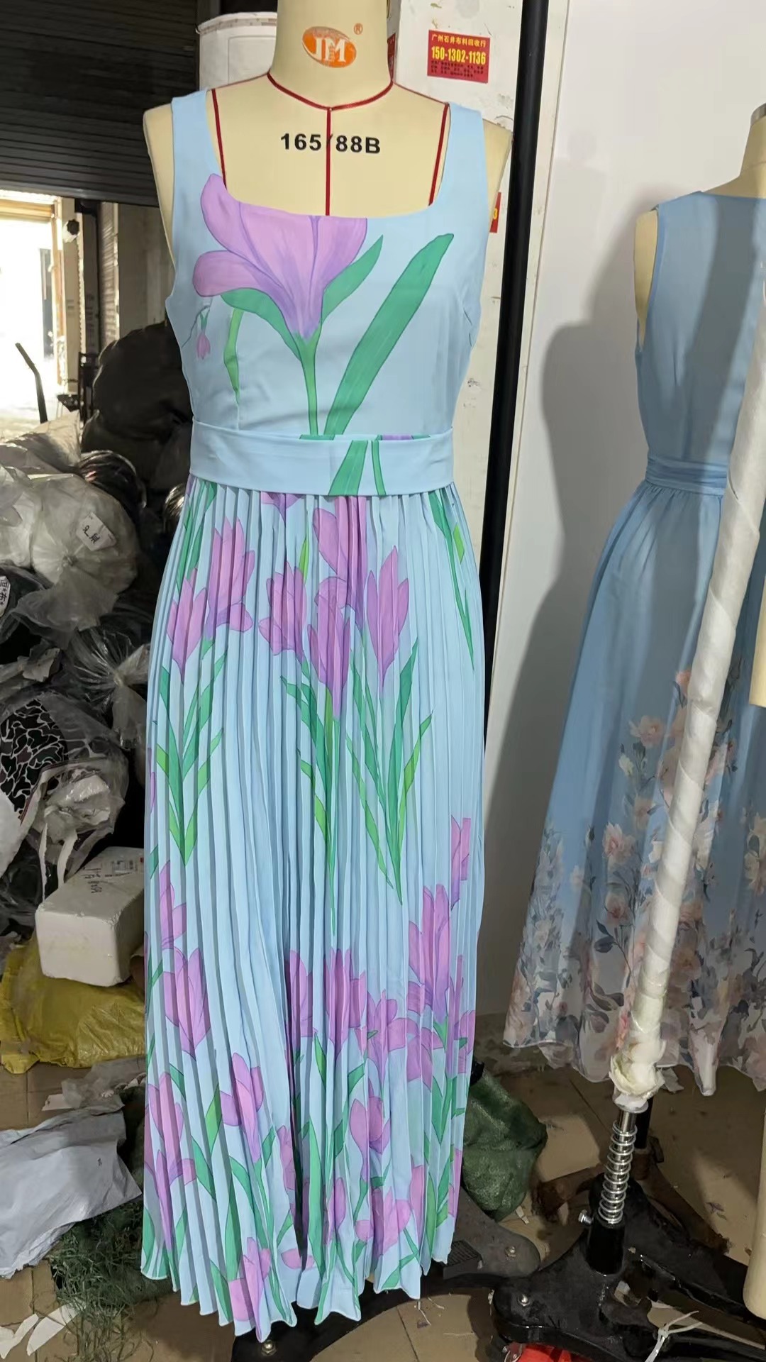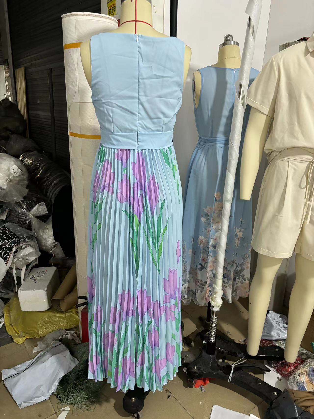 2025 유럽과 미국 의류 독립 스테이션 Amazon 서스펜더 디지털 프린트 플리츠 꽃무늬 롱 드레스