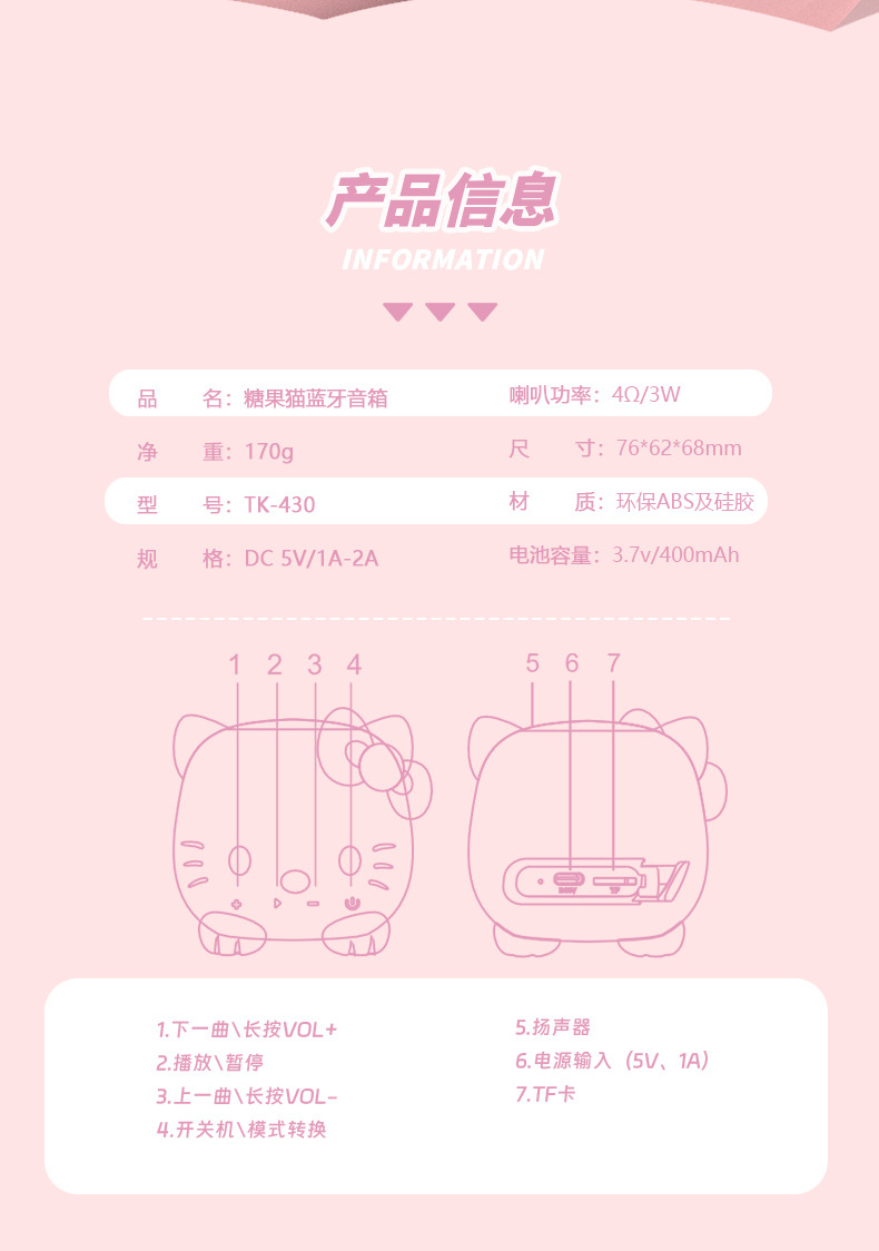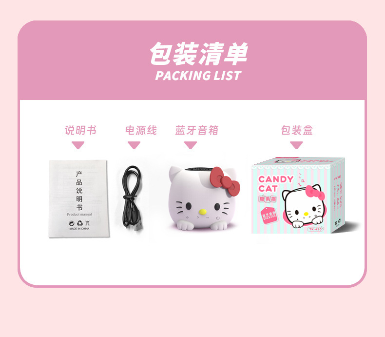 캔디 고양이 소형 강철 총 블루투스 스피커 무선 서브 우퍼 오디오 소형 데스크탑 고품질 미니 홈 야외스토어 가기