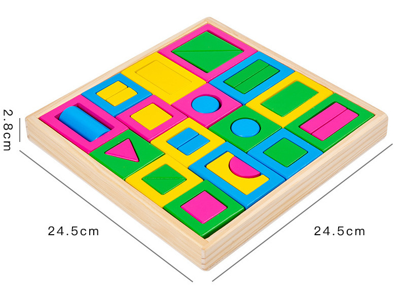 15件亚克力感官积木(CPC、CE) 彩盒规格31.2*23.2*5CM,装箱数量16/件,外箱尺寸64*41.5*25CM,产品重量0.74KG,毛重/净重13/12KG