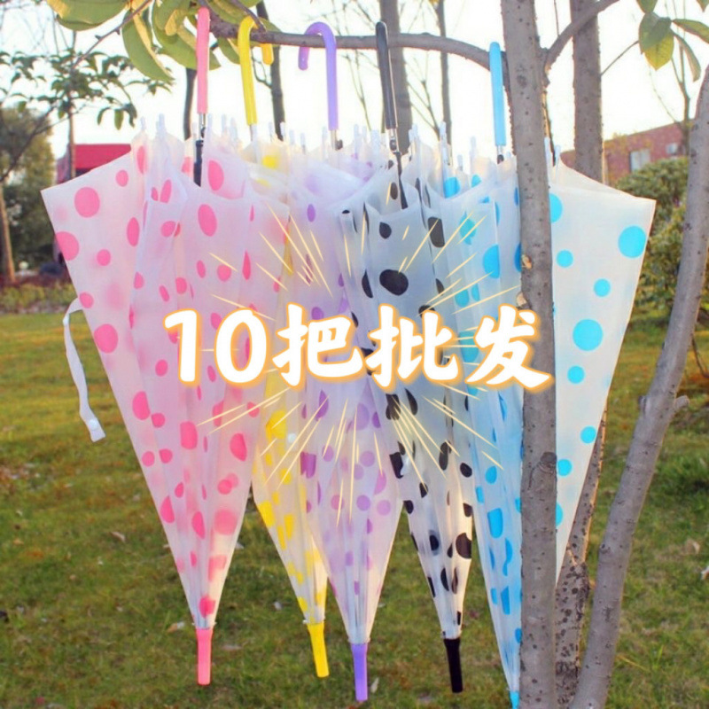 우산 젖빛 반투명 도트 컬러 스트레이트 레버 곡선 핸들 도매 수동 여성용 어린이 환경 친화적 일회용 크로스 보더