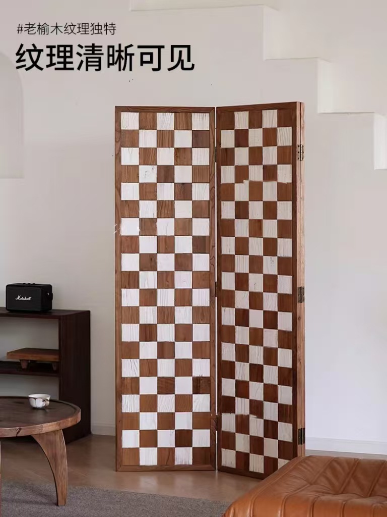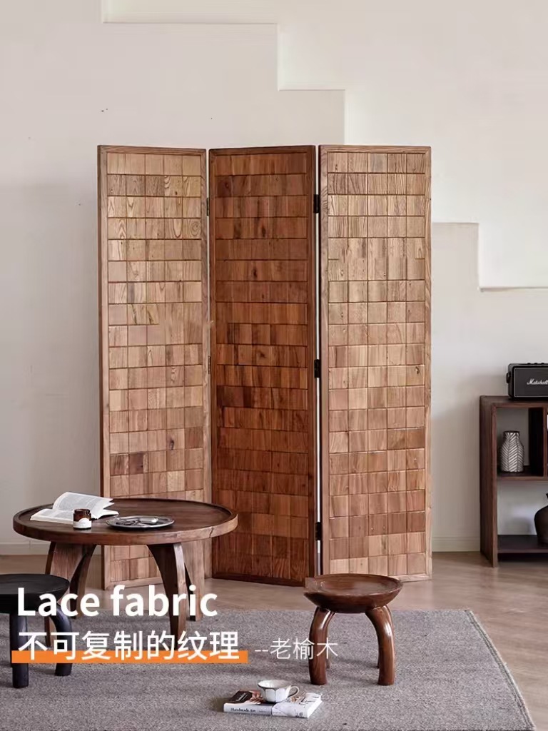 복고풍의 오래된 느릅나무 스크린 느릅나무 마루 파티션 단단한 나무 가정용 접이식 입구 문 스크린 차단