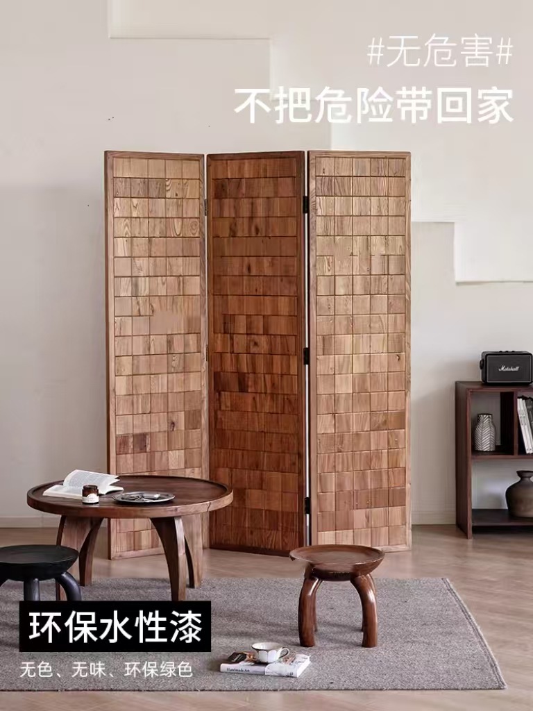 복고풍의 오래된 느릅나무 스크린 느릅나무 마루 파티션 단단한 나무 가정용 접이식 입구 문 스크린 차단스토어 가기
